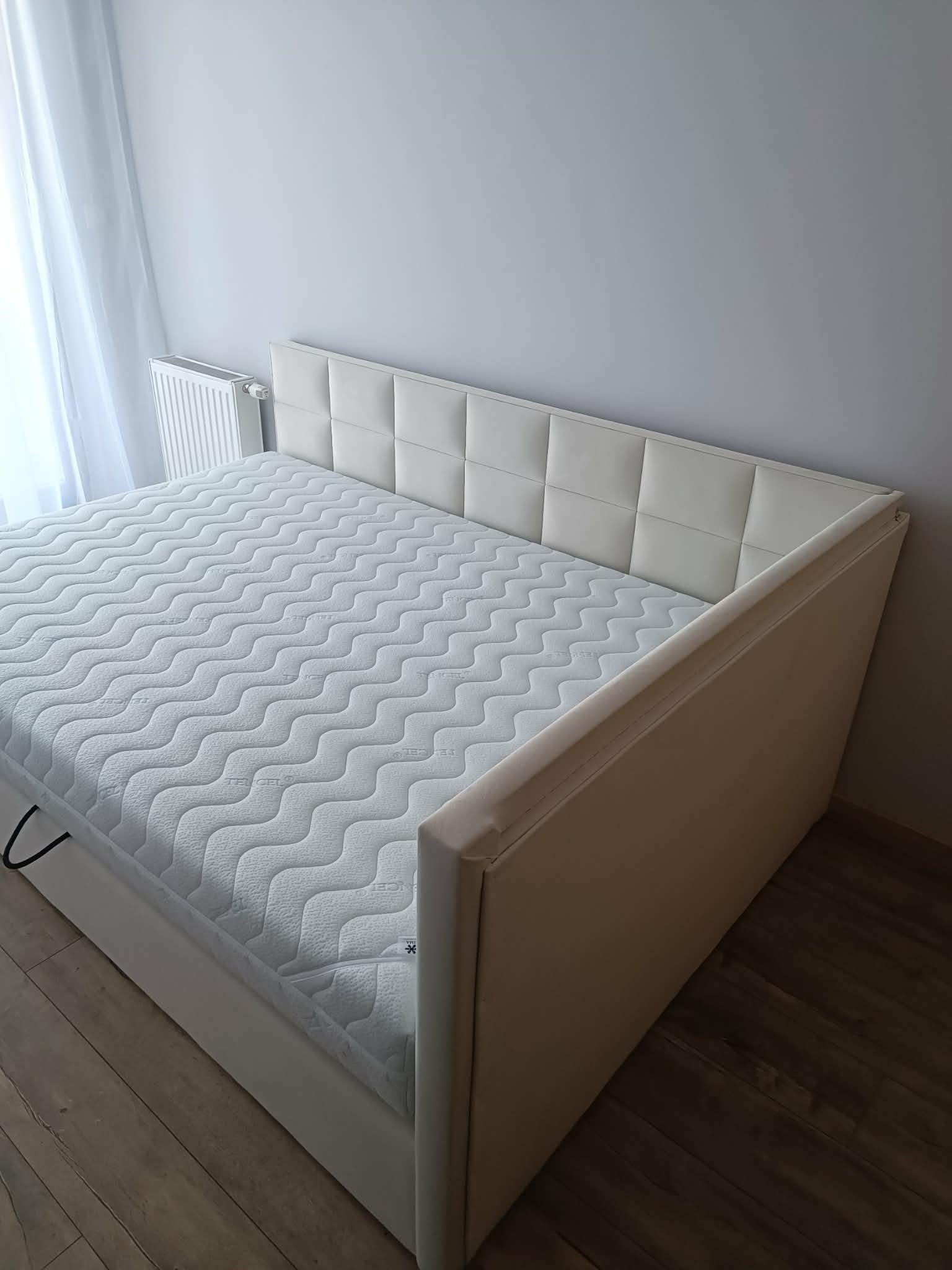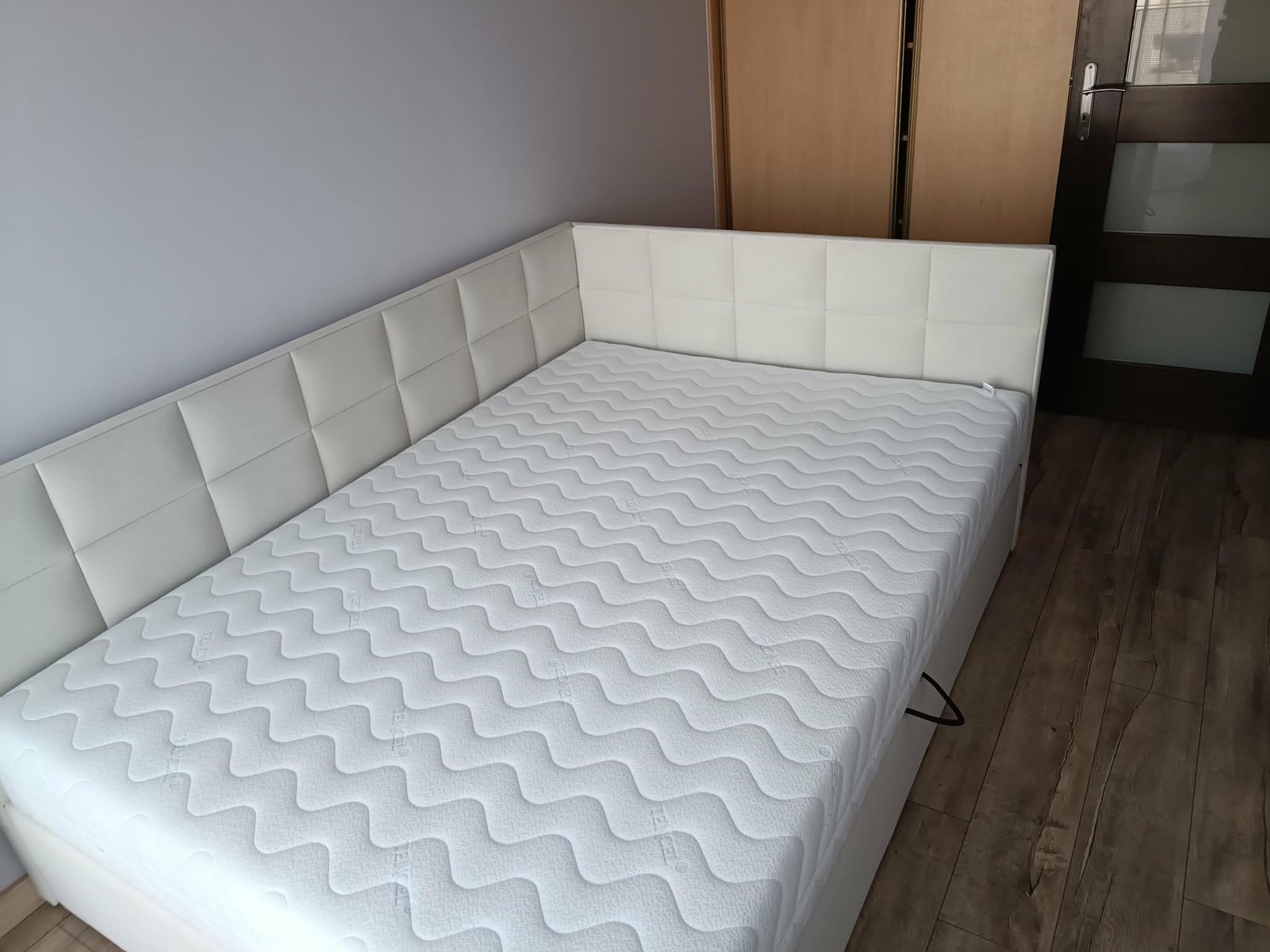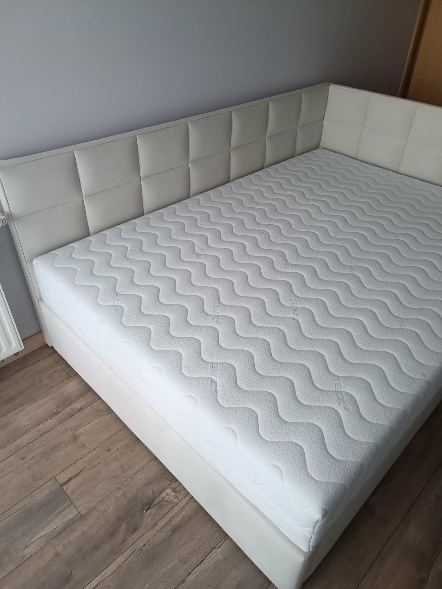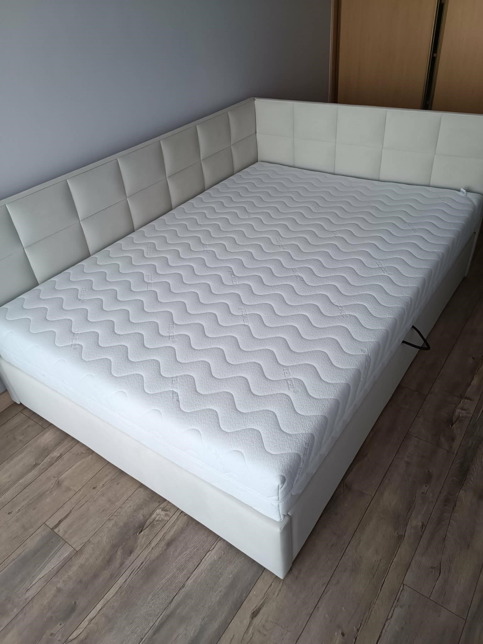 120x200 Łóżko tapicerowane narożne w kwadraty, pojemnik bardzo jasne