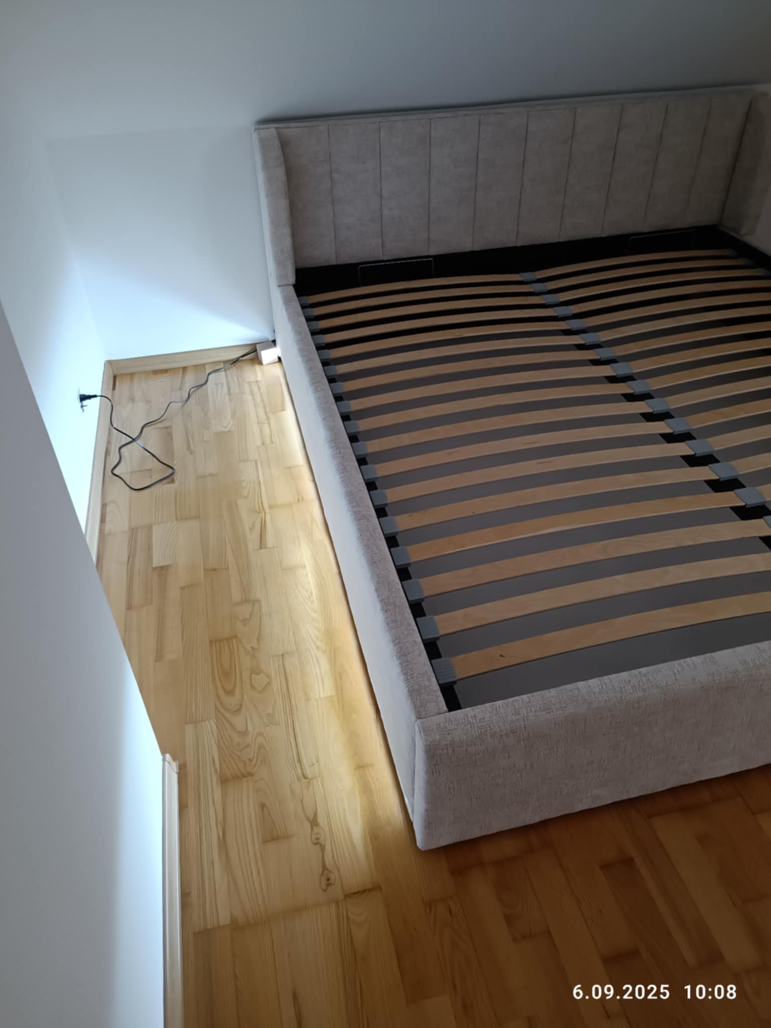 Łóżko tapicerowane z podświetleniem LED sterowane za pomocą pilota i czujnika ruchu