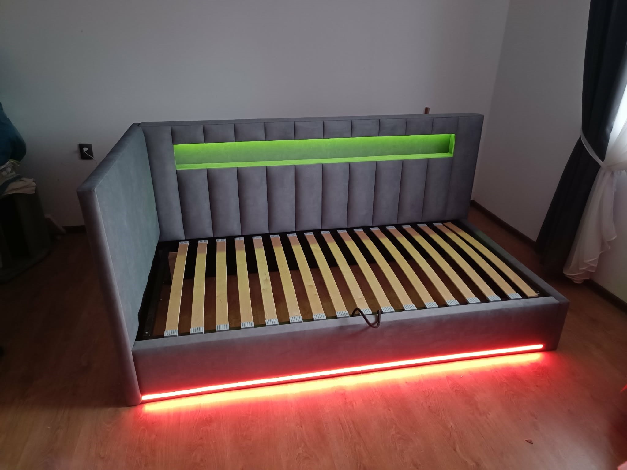 Na życzenie klienta możemy zrobić LED-y w dowolnym miejscu sterowane mogą być za pomocą pilota czujnika ruch (co jest o tyle wygodne że światło zapala się samoczynnie gdy tylko wykryje ruch nie musimy się obijać szukając włącznika) może także być sterowane za pomocą aplikacji Można ustawiać dowolnie kolory. Światło jest sterowane niezależnie