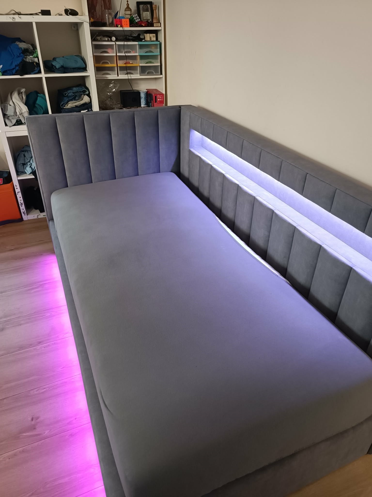 Łóżko z półką podświetlenie LED w boczkach jak i zagłowiu