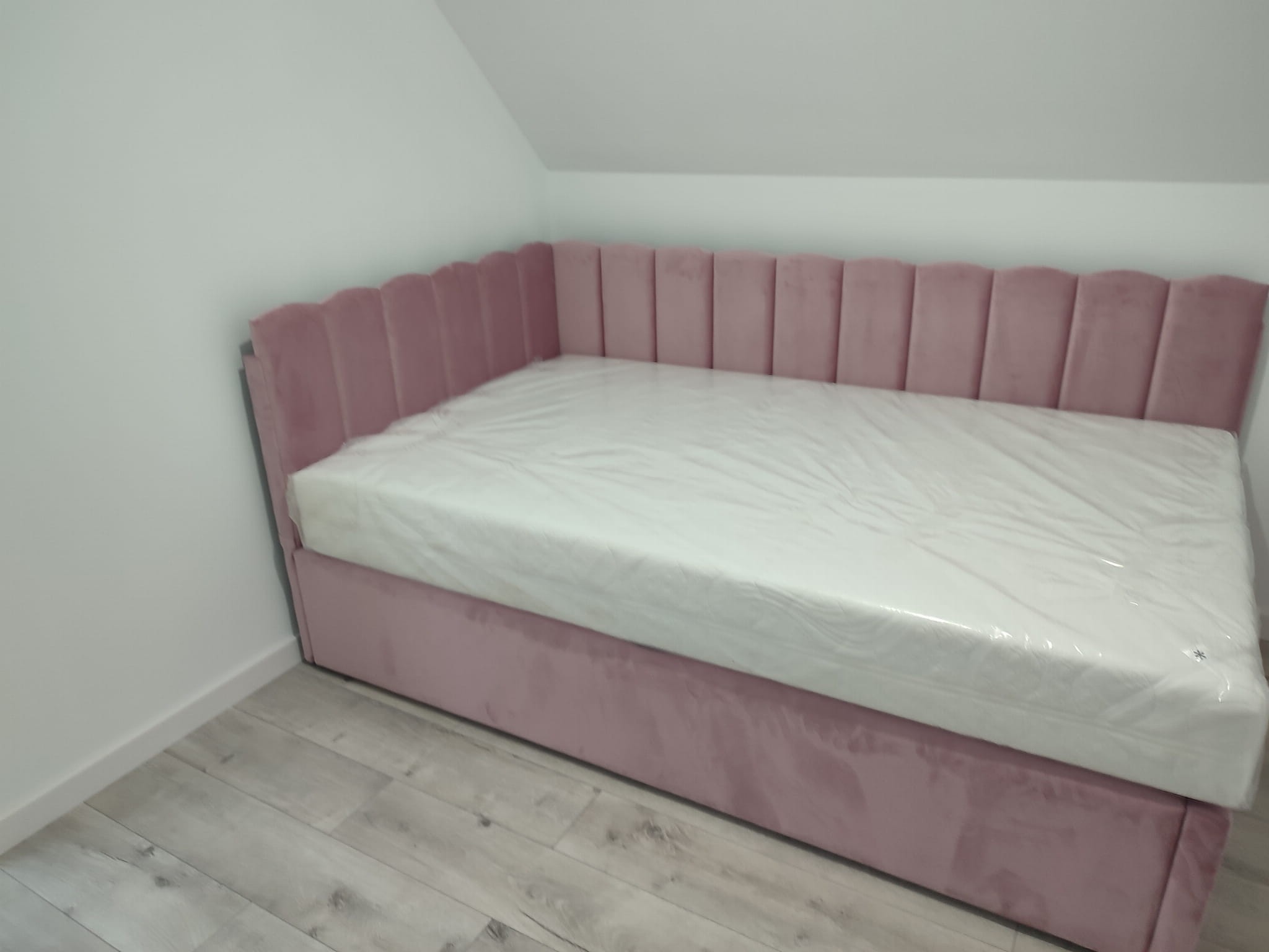 120x200 łóżko tapicerowane pasy, narożne, pojemnik