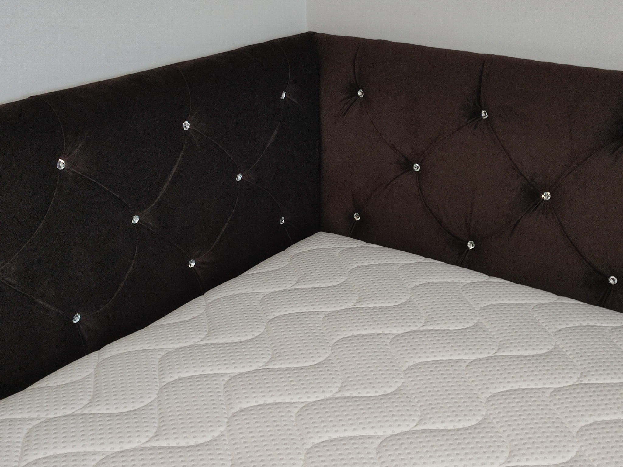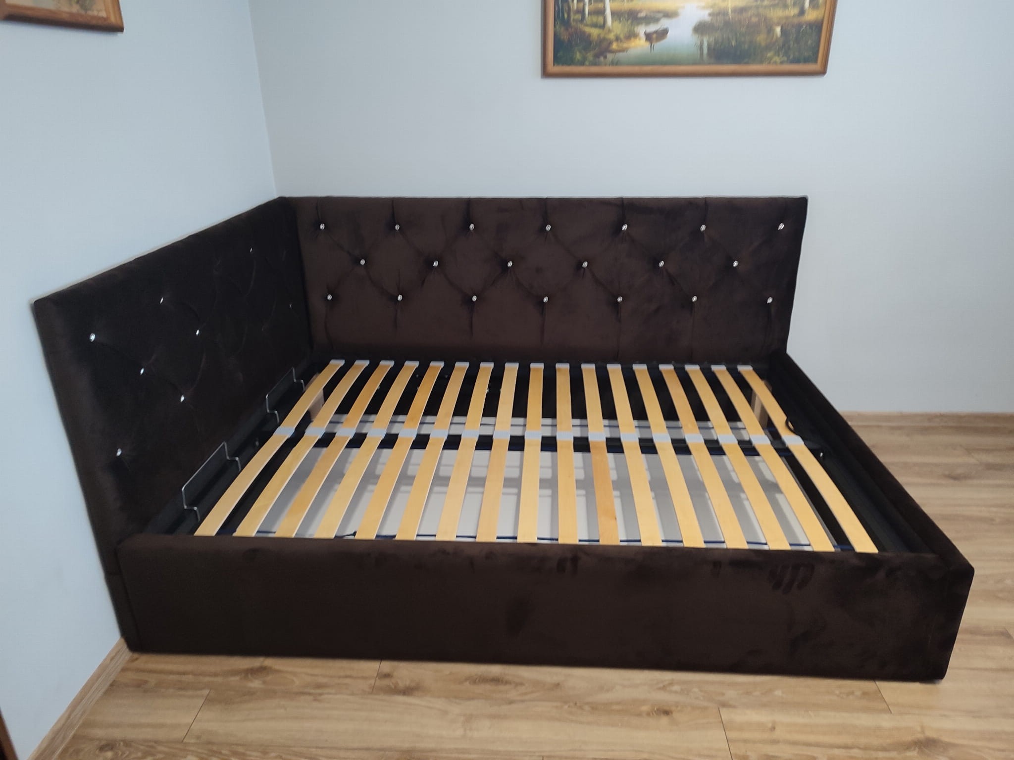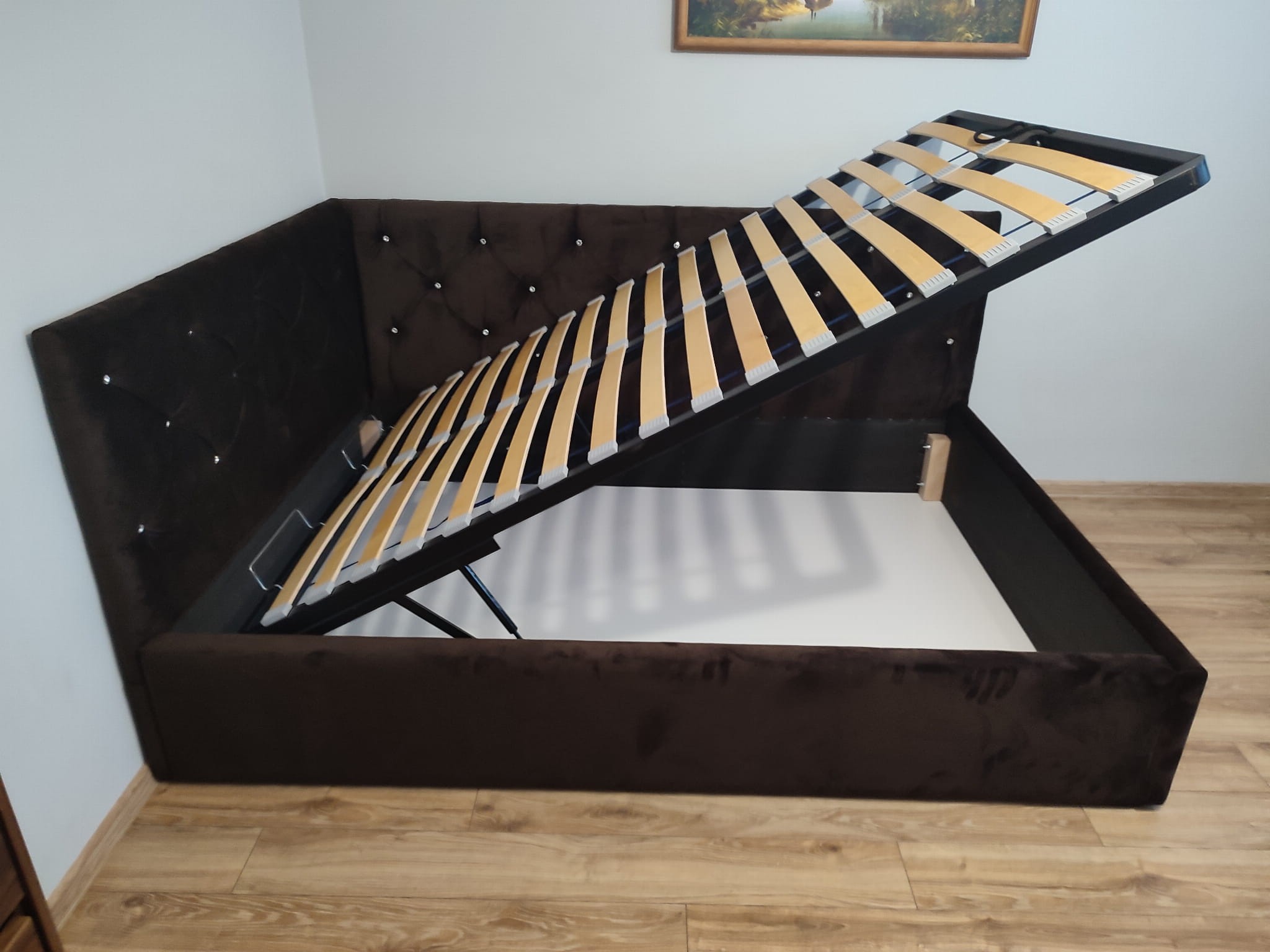120x200 łóżko tapicerowane pikowane kryształkami, narożne, pojemnik