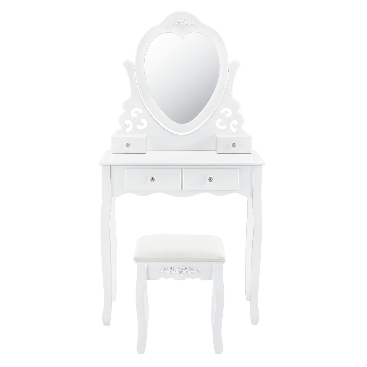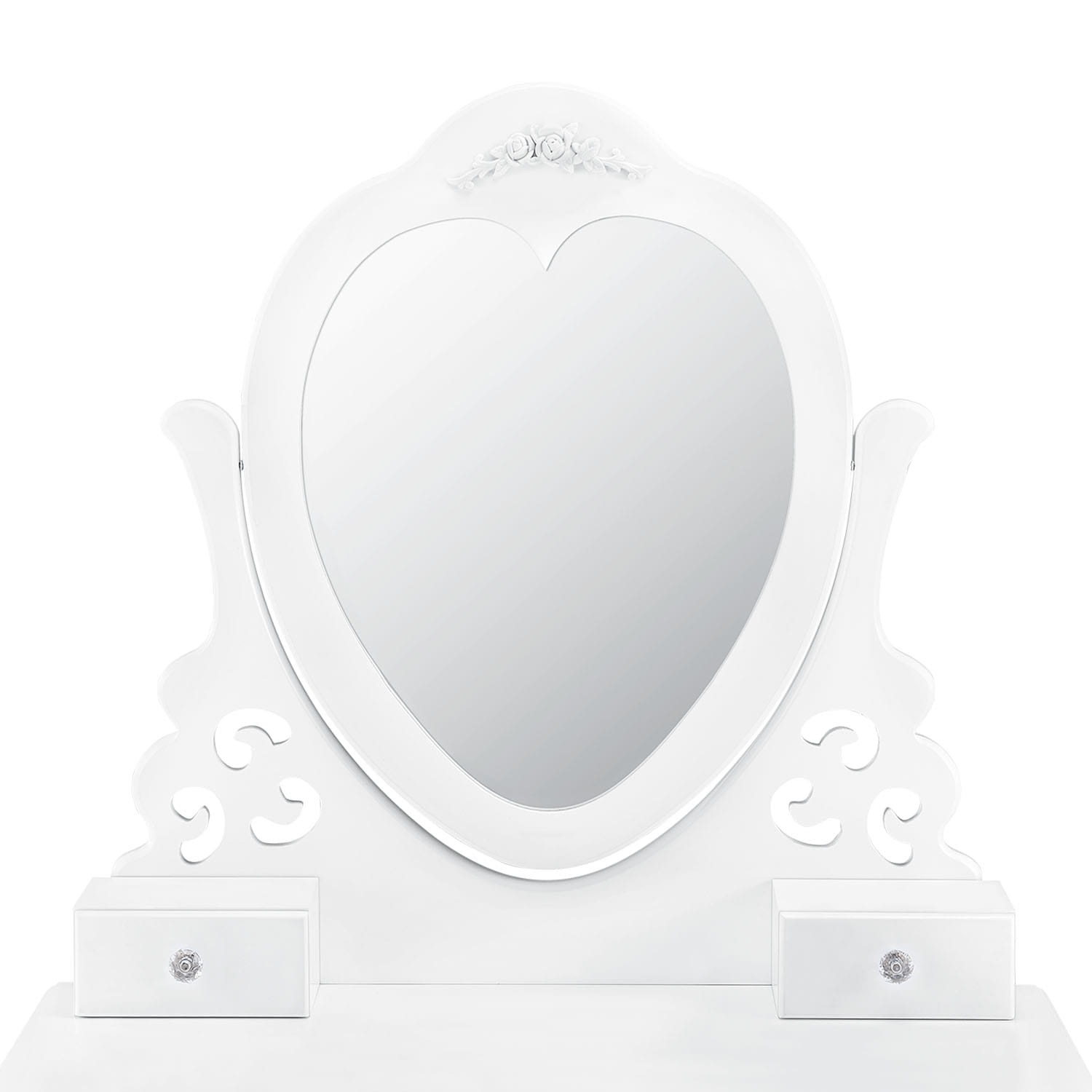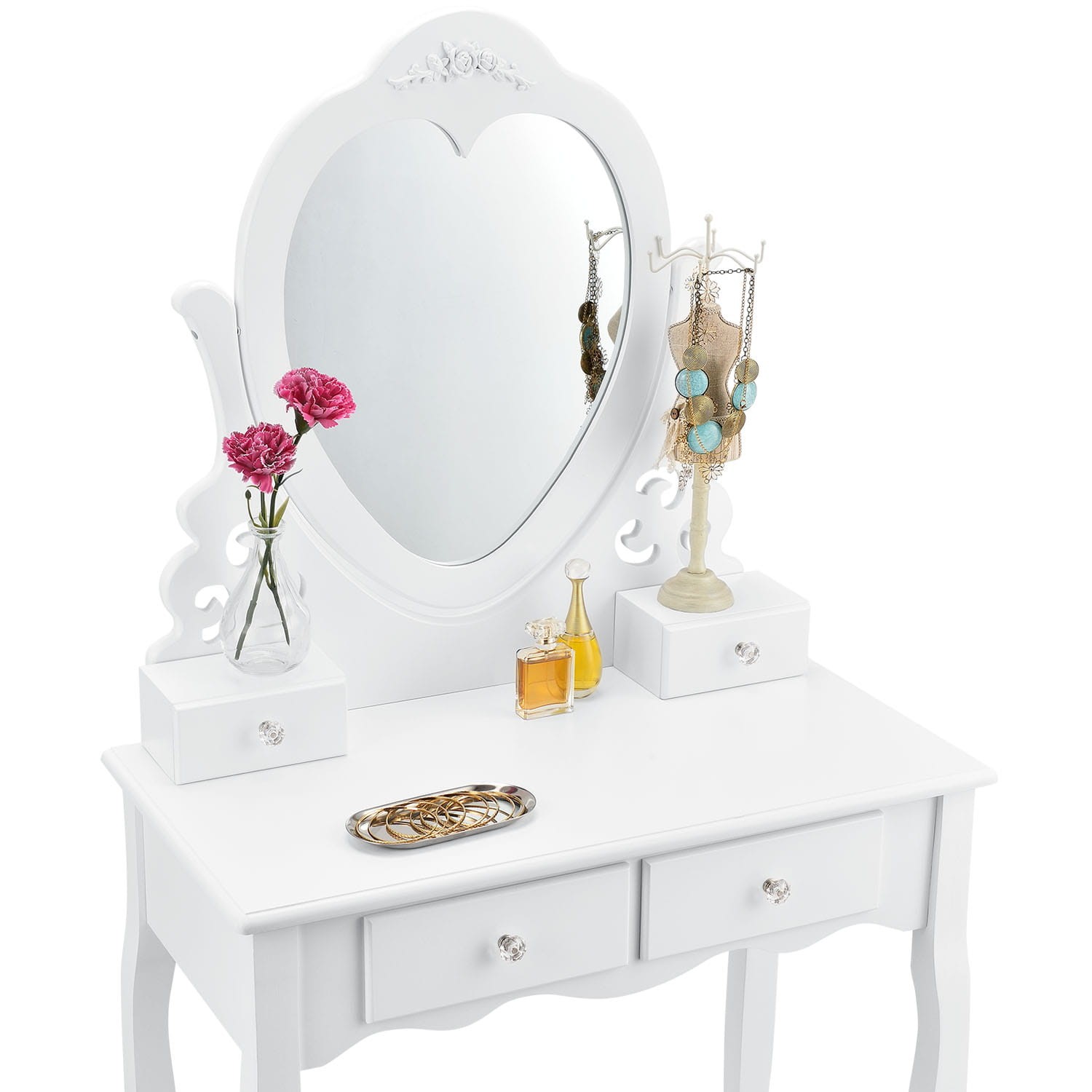 Stolik do makijażu z lustrem w kształcie serca, szufladami i stołkiem