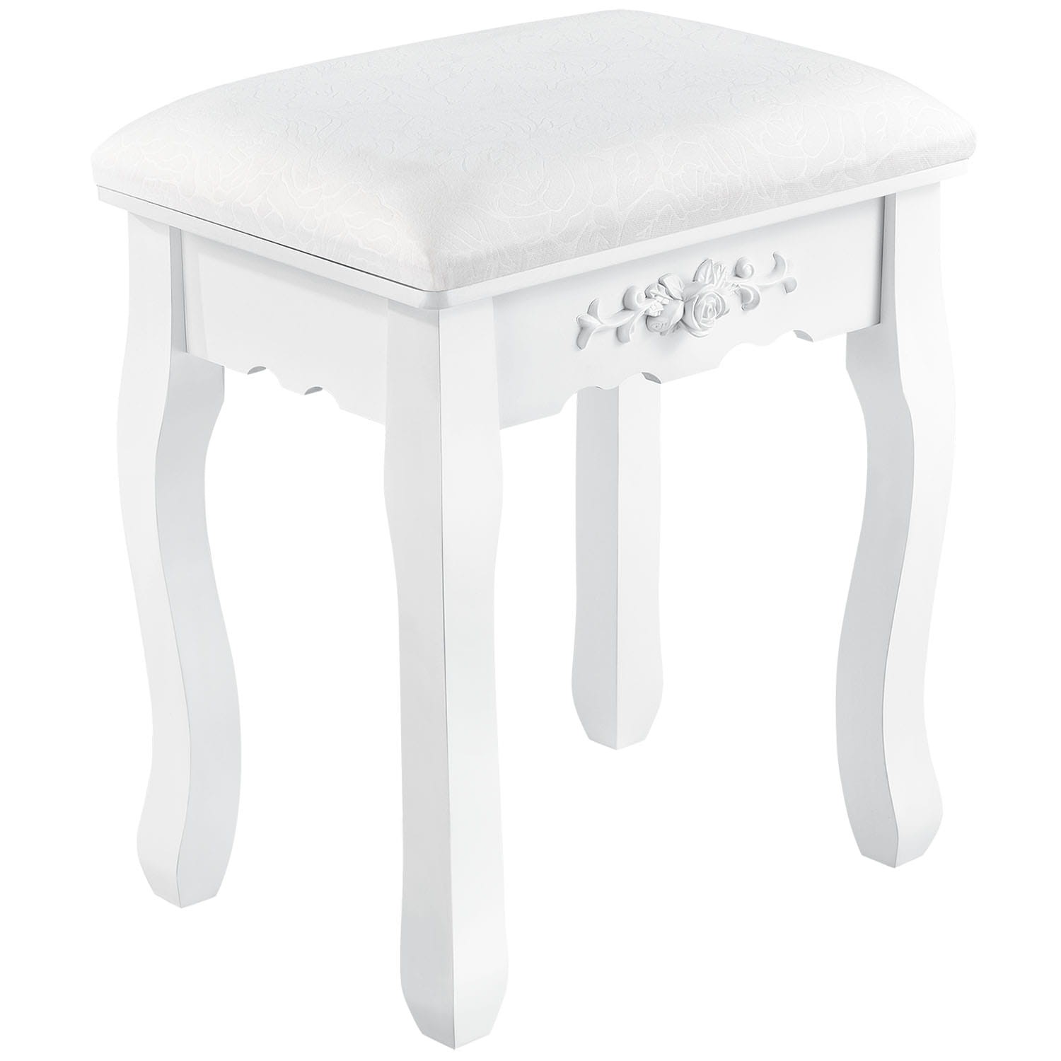 Wygodny taboret stanowi dopełnienie tego kosmetycznego stolika . Gruba wyściółka sprawia, że krzesło jest niezwykle miękkie i wygodne. Siedzisz bardzo wygodnie. Gdy nie jest używany, stołek można łatwo wepchnąć pod stół. Jego okładka ma lekki kwiatowy wzór, który nadaje stołkowi romantyczny wygląd.