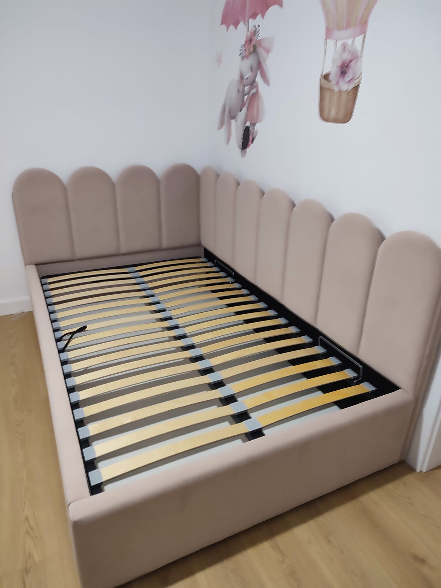 140x200 Łóżko tapicerowane narożne w biszkopty duże, pojemnik