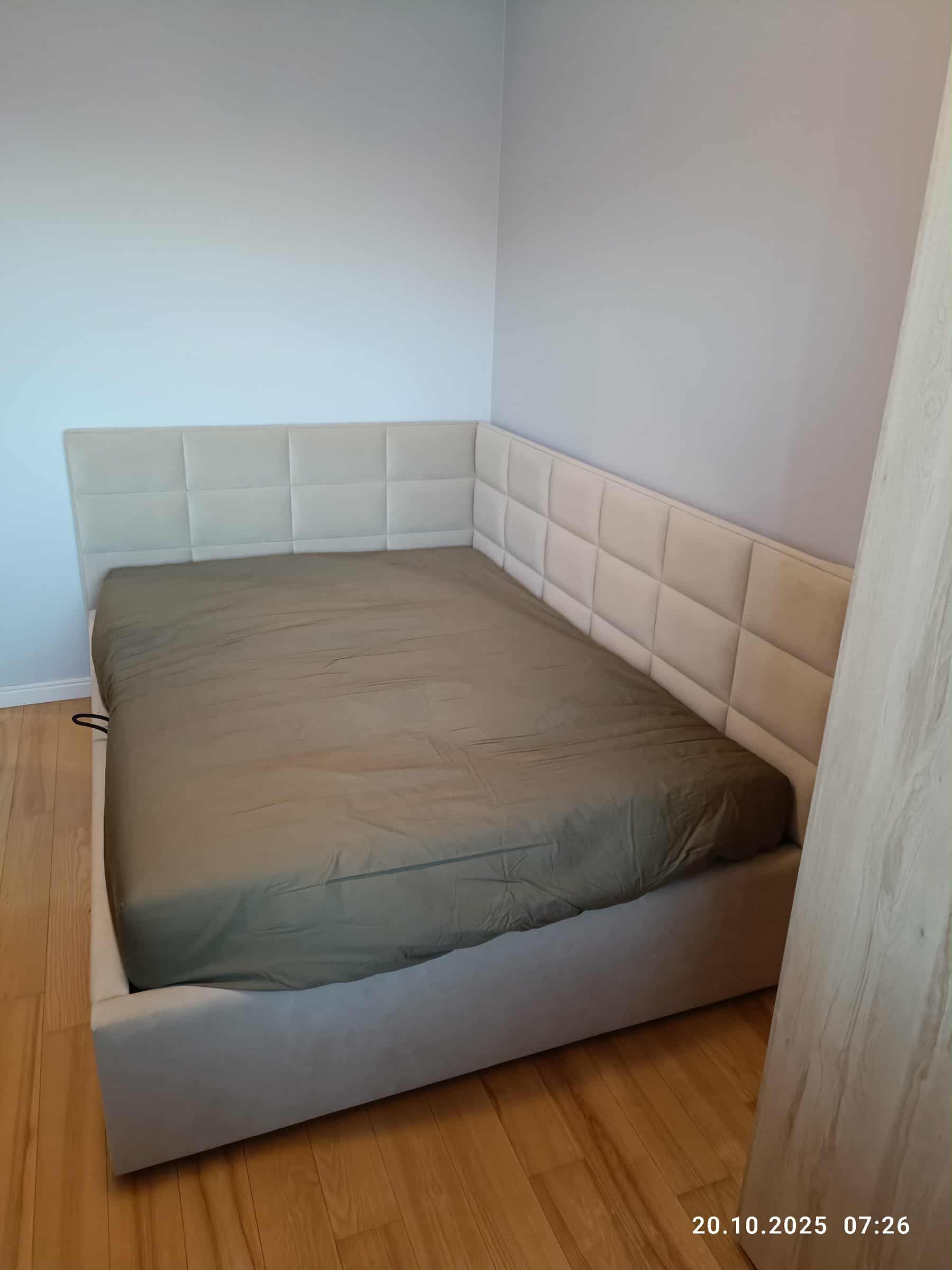 140x200 Łóżko tapicerowane narożne w kwadraty jasne pojemnik