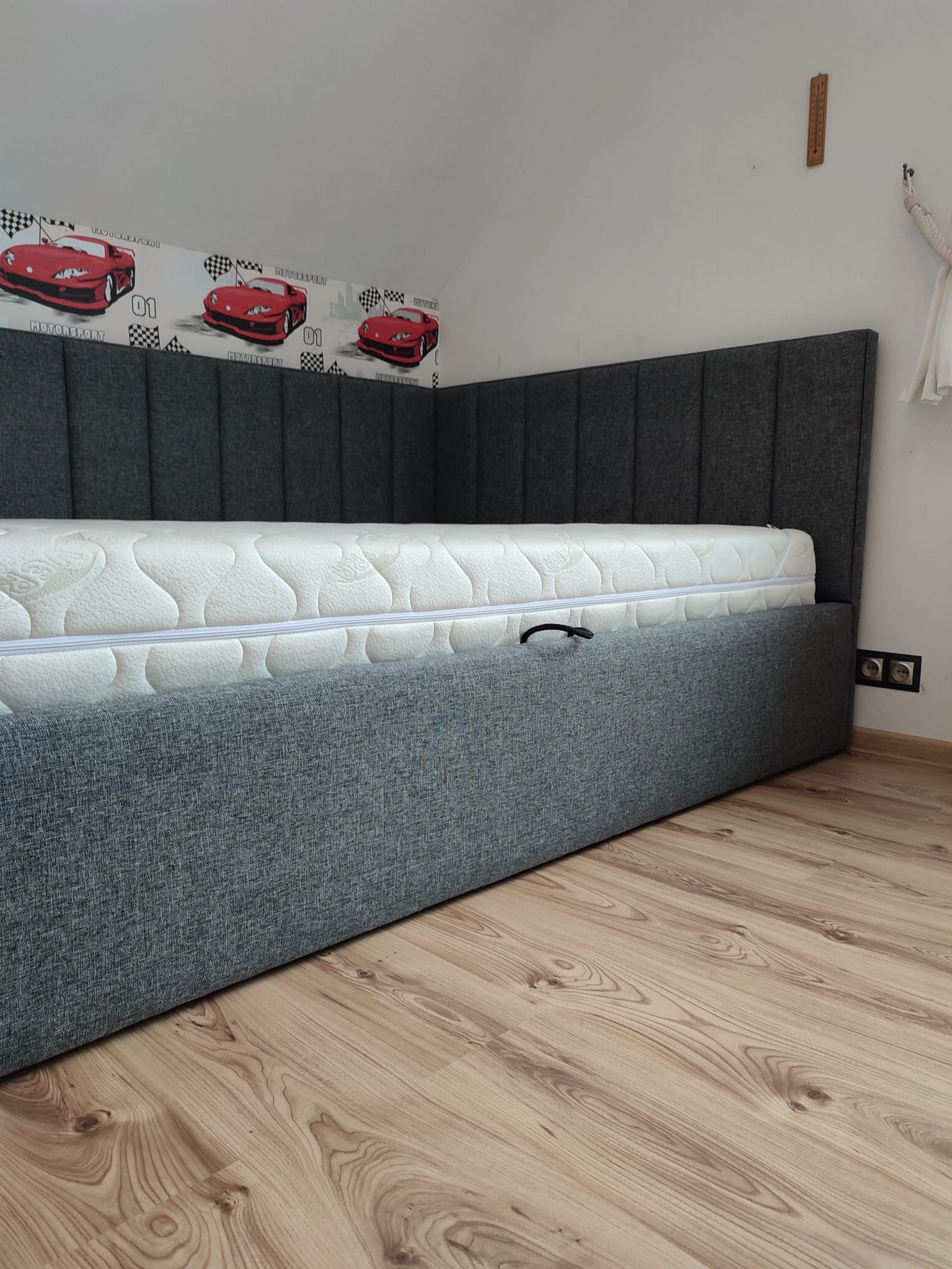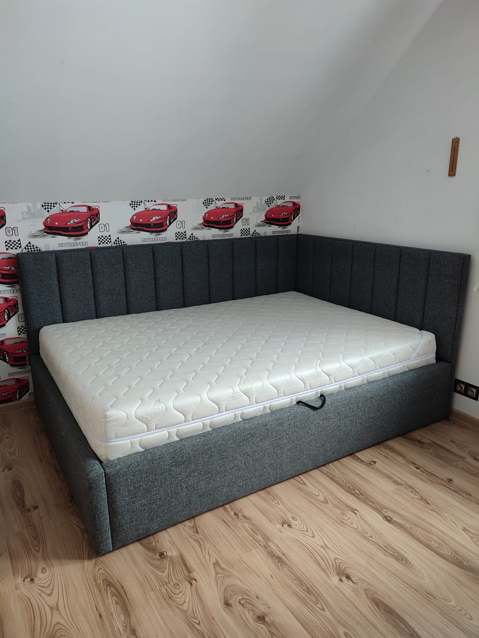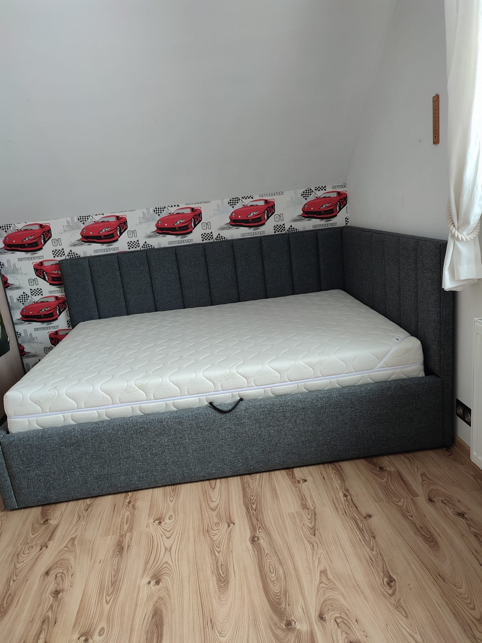 140x200 Łóżko tapicerowane narożne w pasy, pojemnik