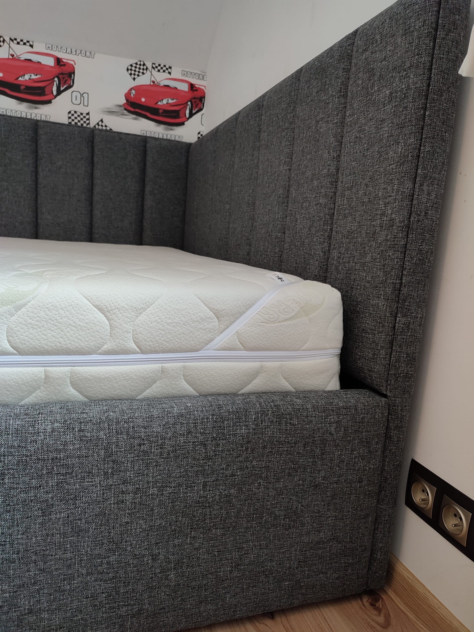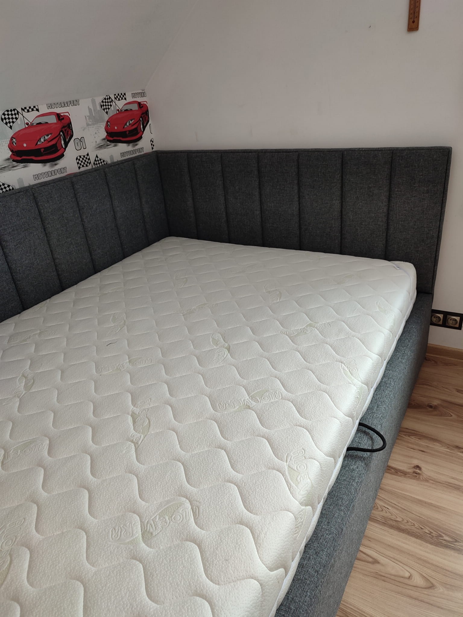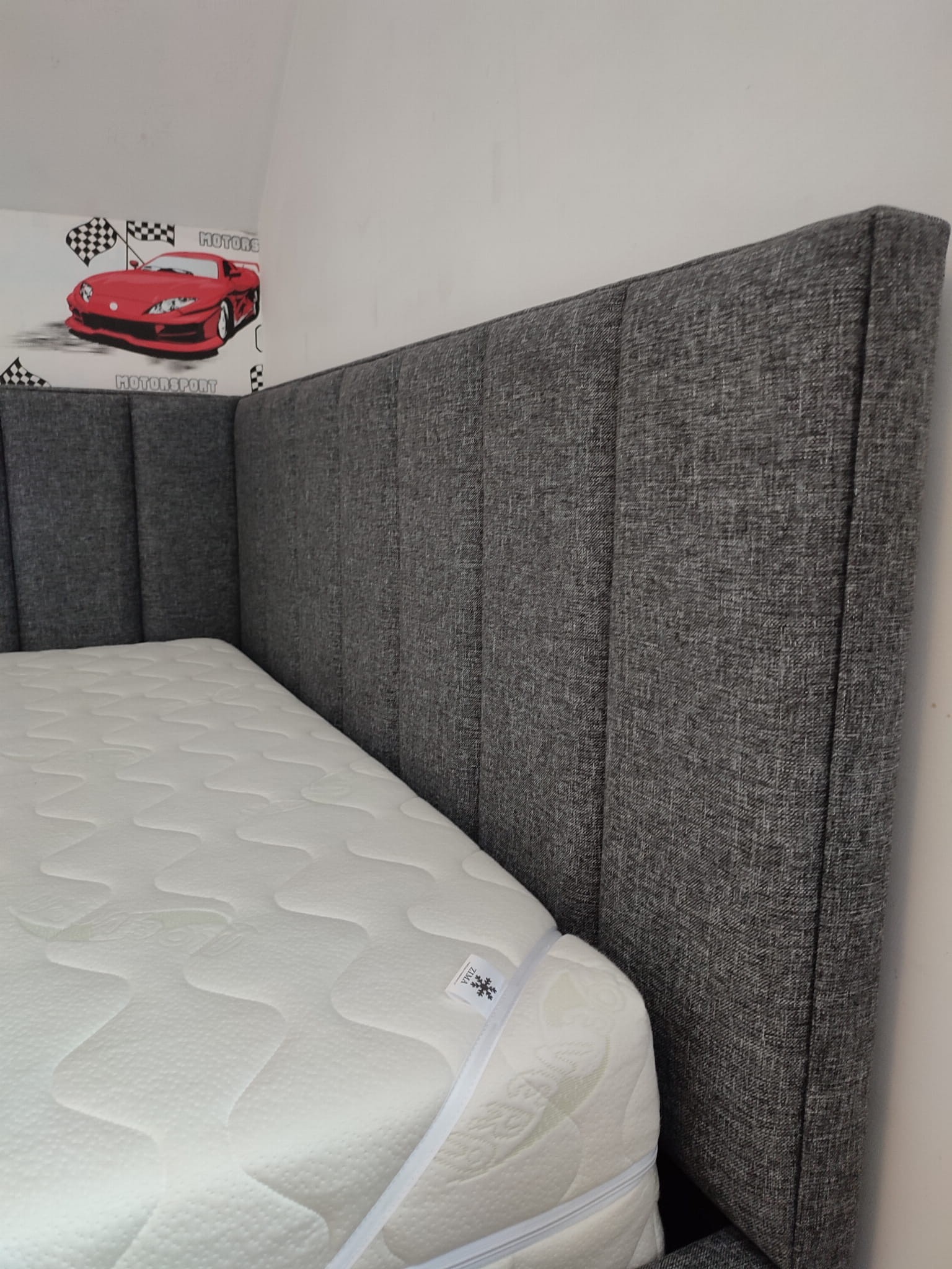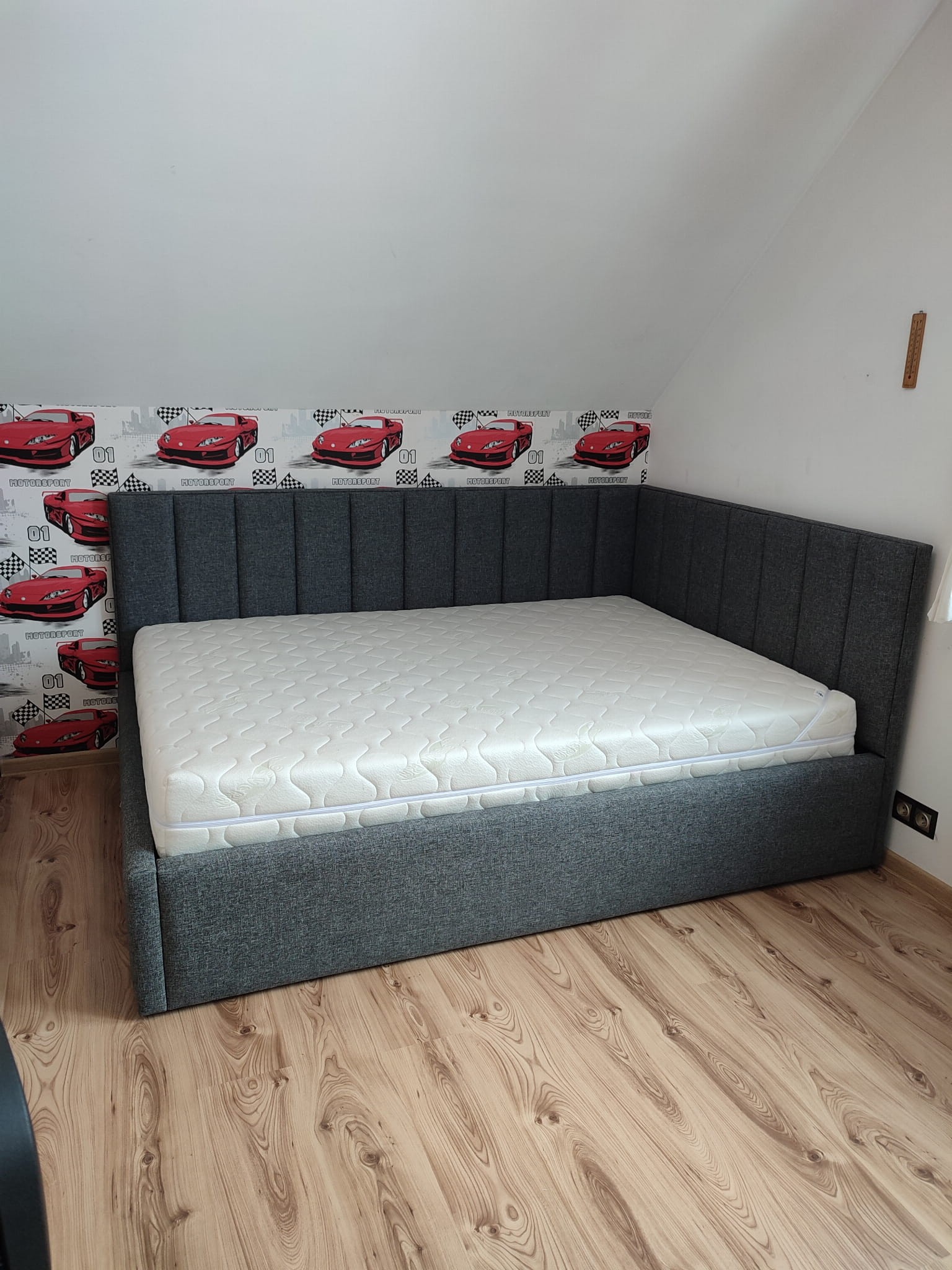 140x200 Łóżko tapicerowane narożne w pasy, pojemnik