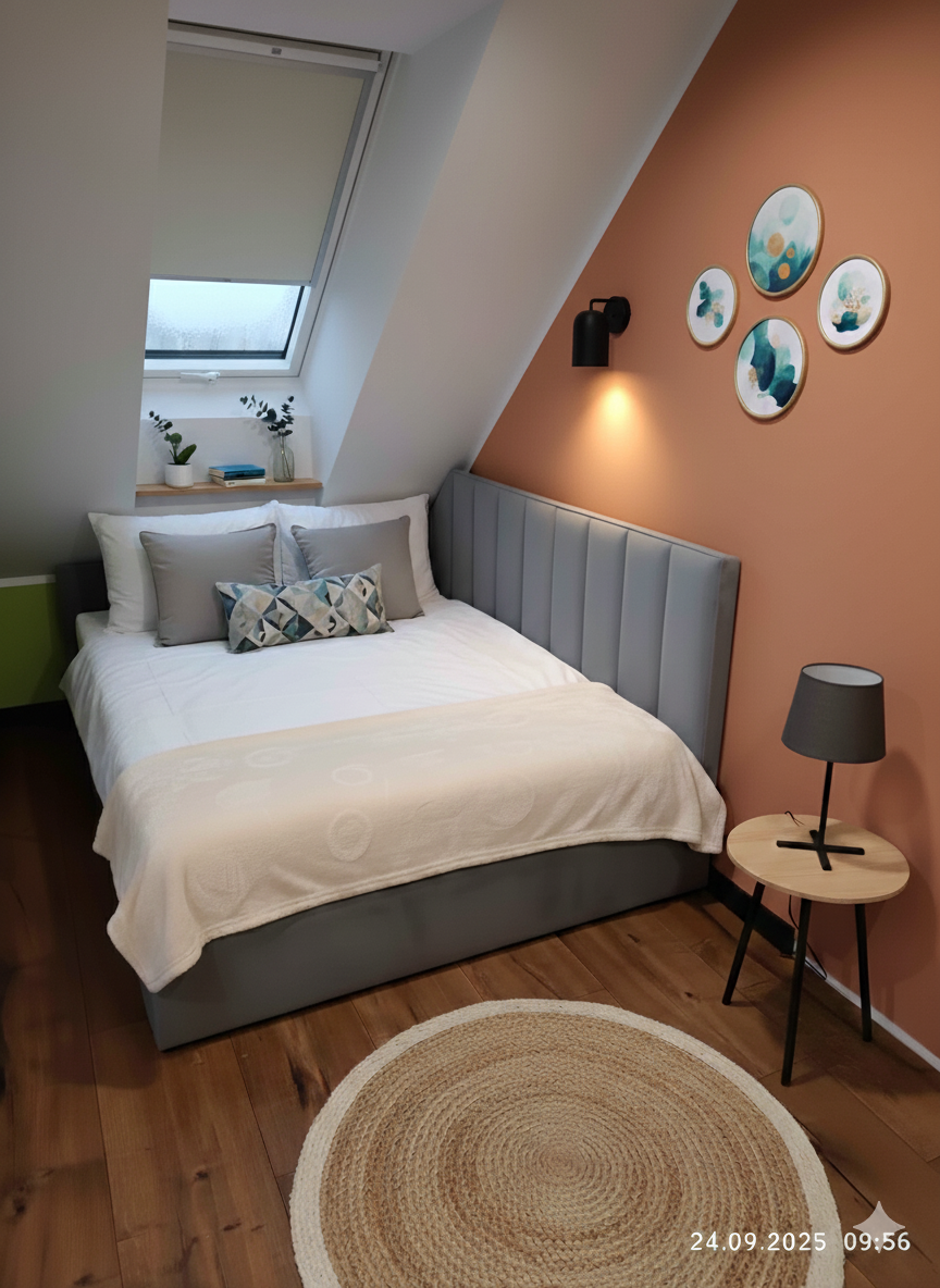 Łóżko narożne w biszkopty dopasowane do małych mieszka pod skosy