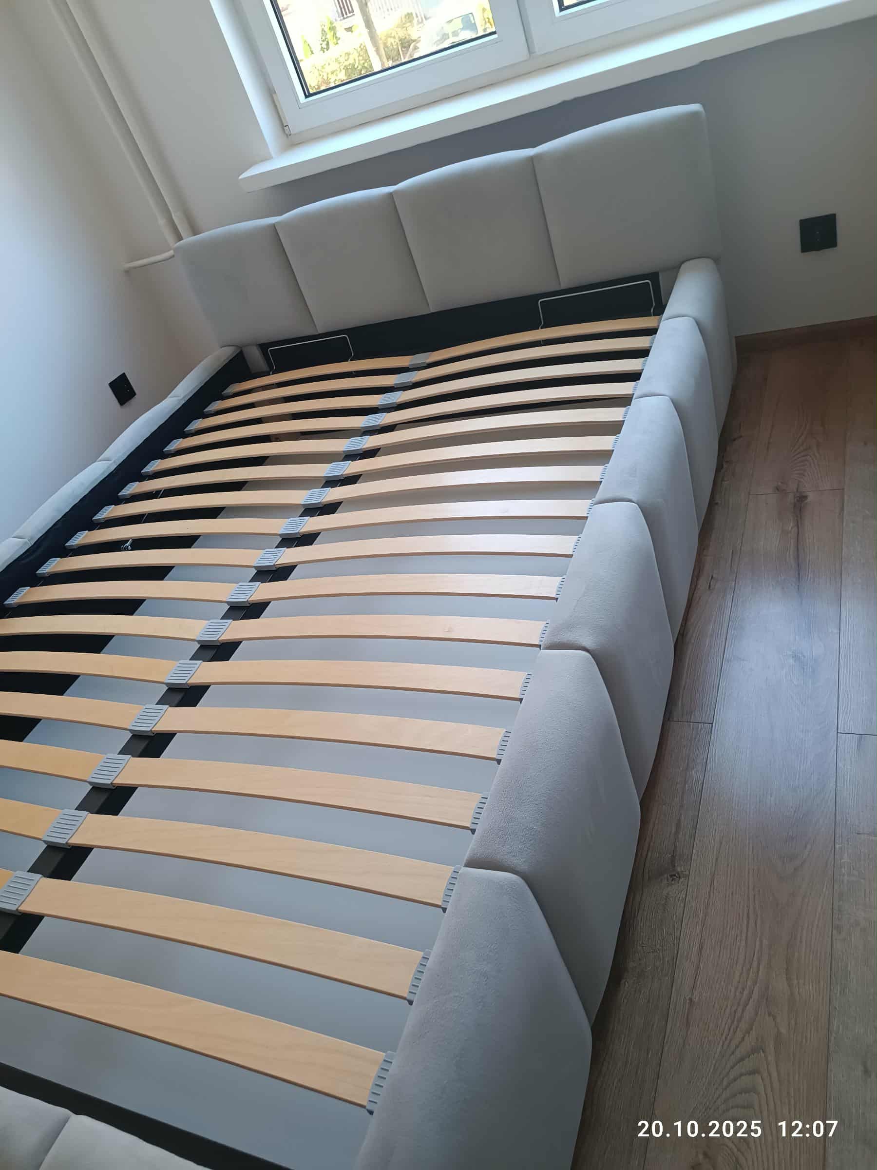 Stelaż siedemnasto listwowy wykonany z profili grubościennych o przekroju profili bocznych 40x30 mm i listwie środkowej o przekroju 50x40 mm. Wyposażony w siedemnaście rzędów listew ze sklejki brzozowej, giętych oddalonych od siebie o 5 cm. Stelaż od strony wezgłowia zawieszony jest na zawiasach z siłownikami gazowymi.