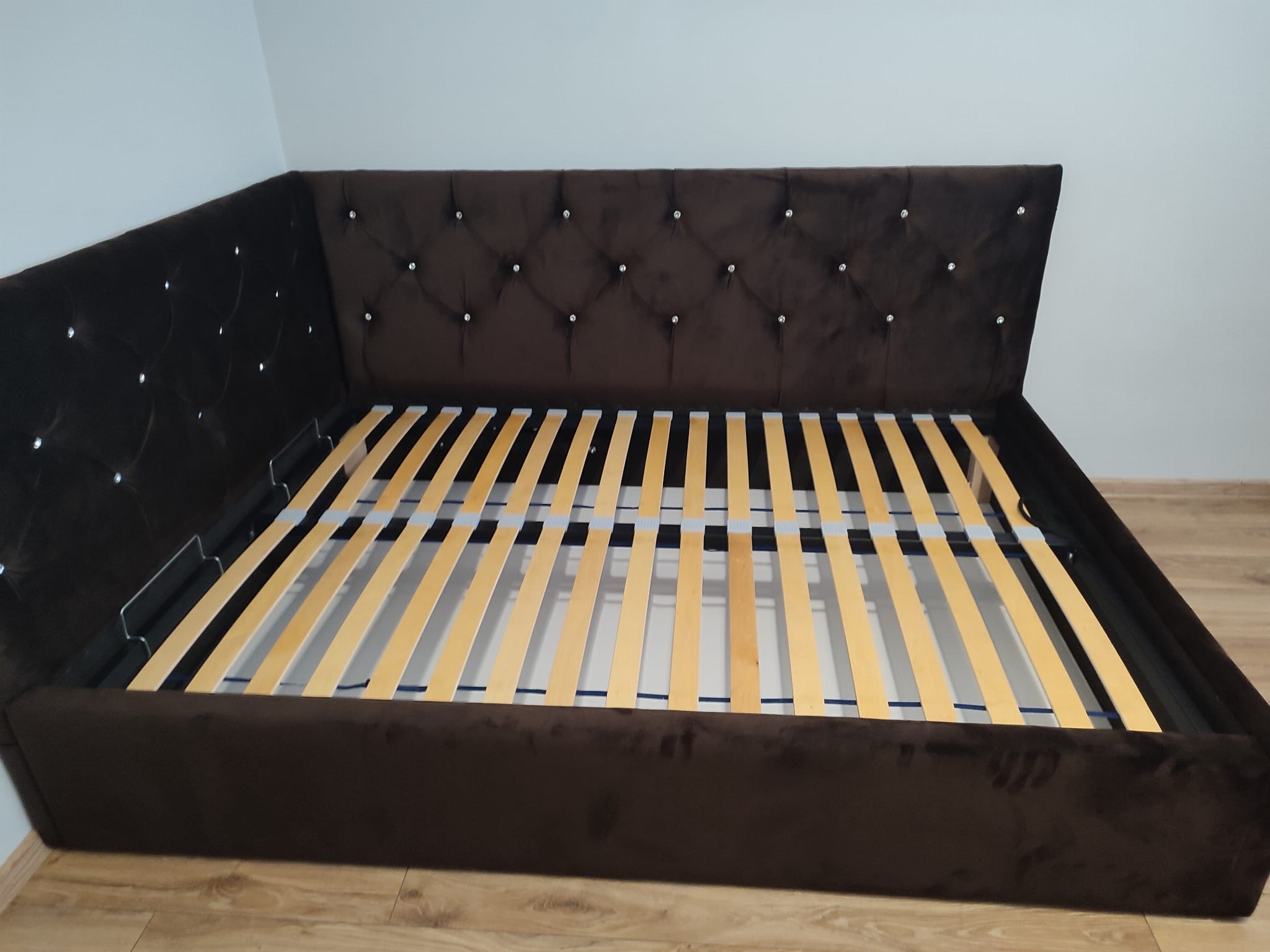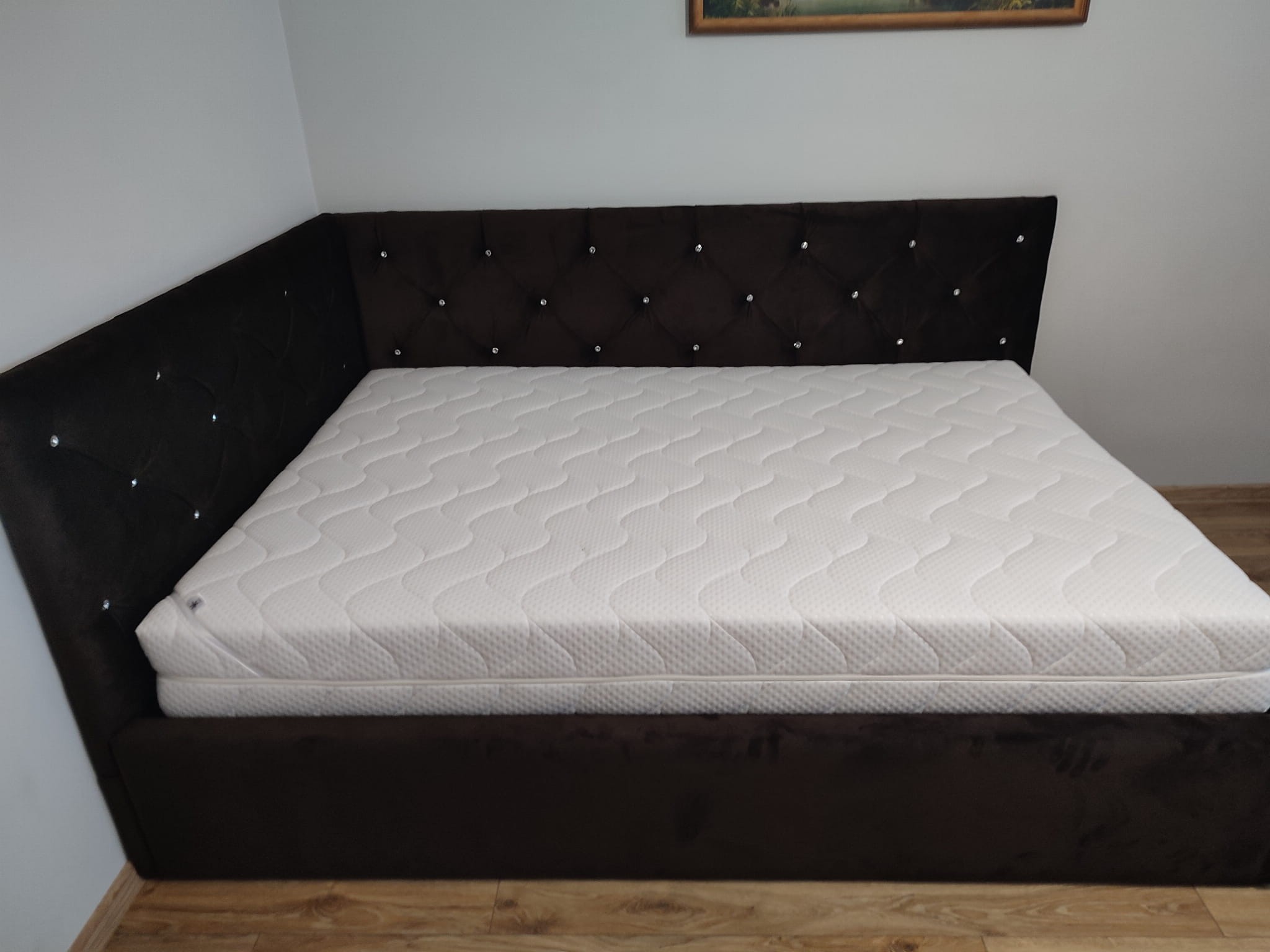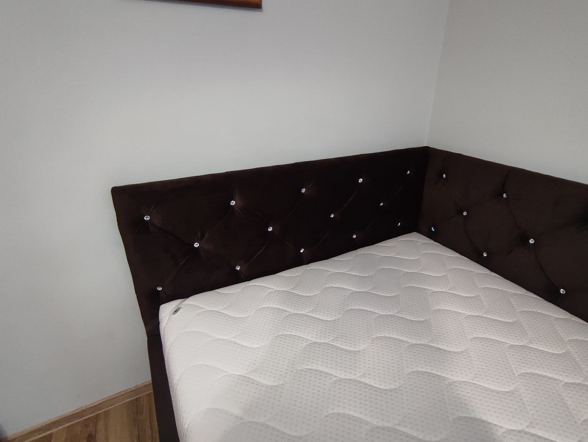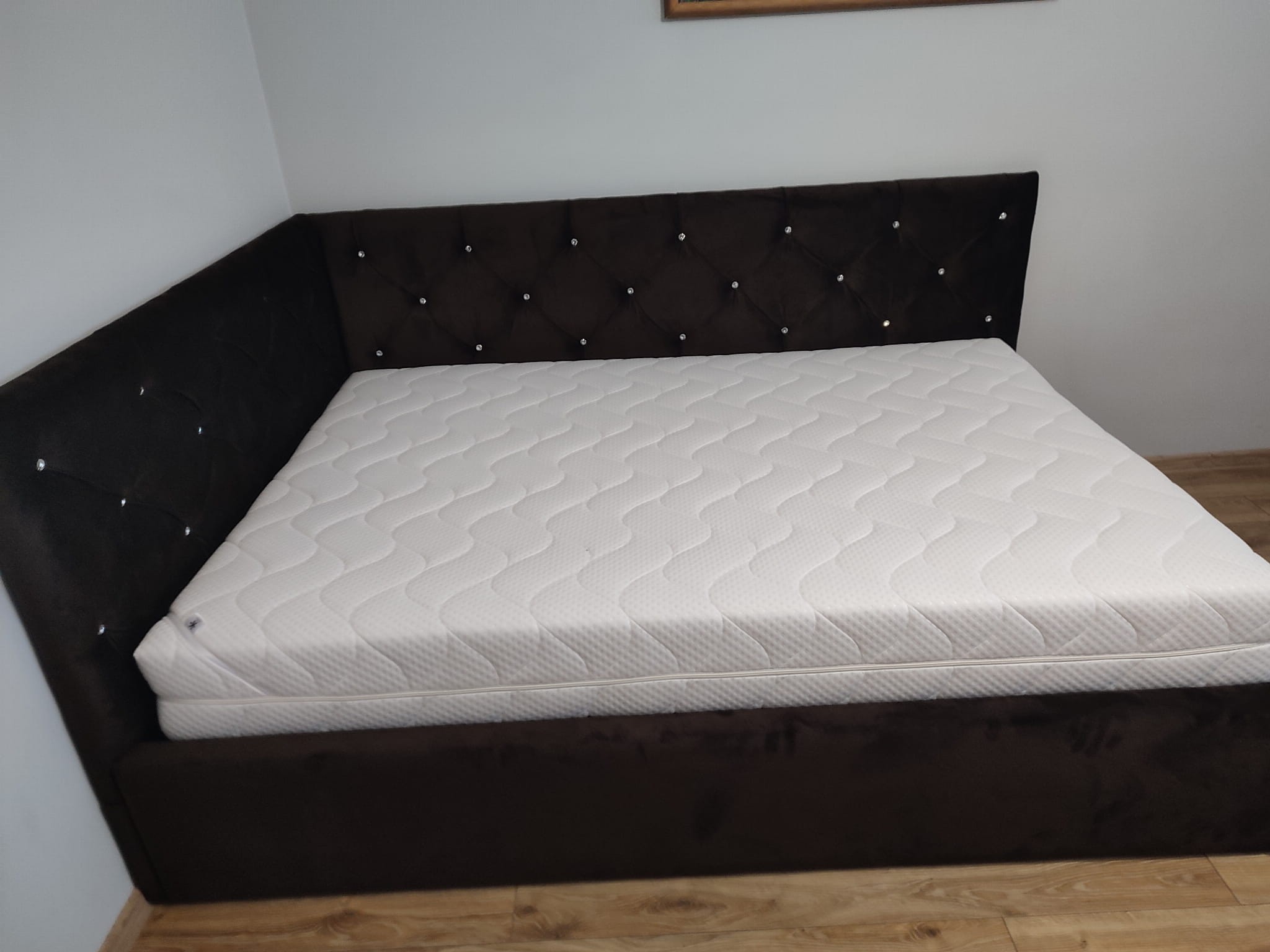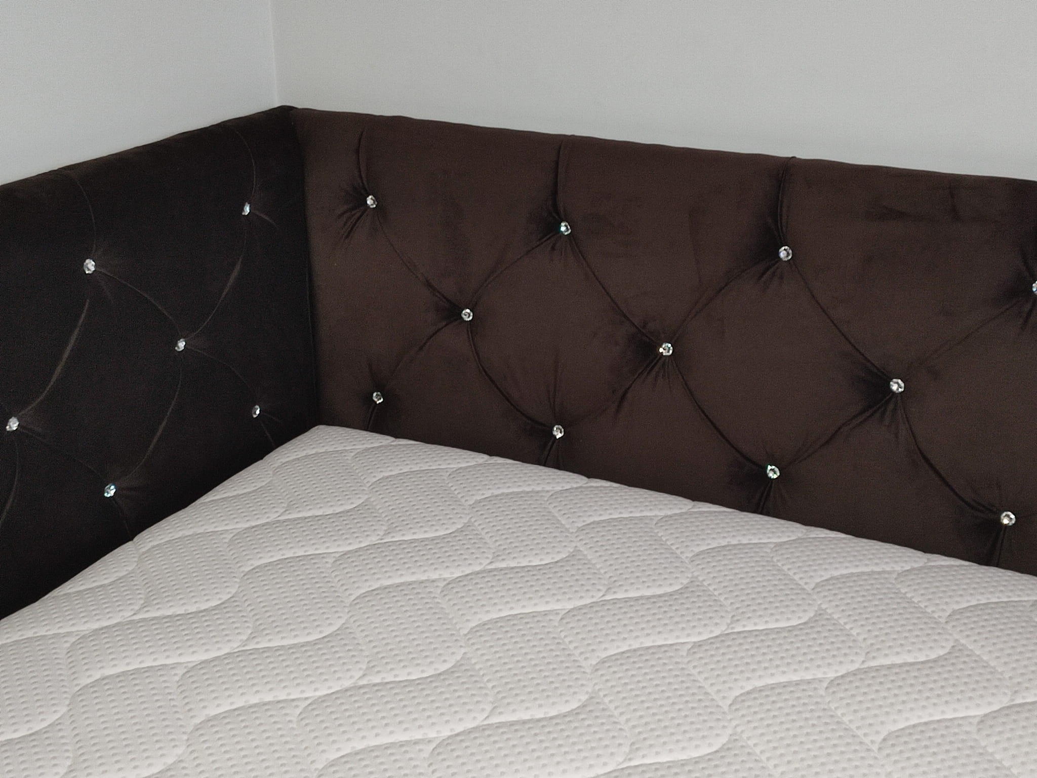 140x200 łóżko tapicerowane pikowane kryształkami, narożne, pojemnik