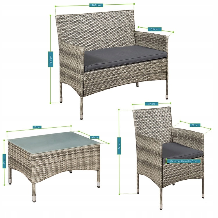 Dzięki polyrattanowemu kompletowi ogrodowemu, przekształcasz swoją przestrzeń na zewnątrz w stylowe miejsce do relaksu i odpoczynku. Wytrzymała konstrukcja stalowa i odporne na warunki atmosferyczne włókna z polirattanu sprawiają, że meble ustawione na tarasie pod altaną czy w ogrodzie bardzo ładnie się prezentują. Duży stolik ze szklanym blatem służy jako miejsce do postawienia żywności i napojów. Grube poduszki siedziska gwarantują trwały komfort. Wieczory towarzyskie z rodziną, przyjaciółmi lub sąsiadami będą wspaniałym relaksem na świeżym powietrzu.