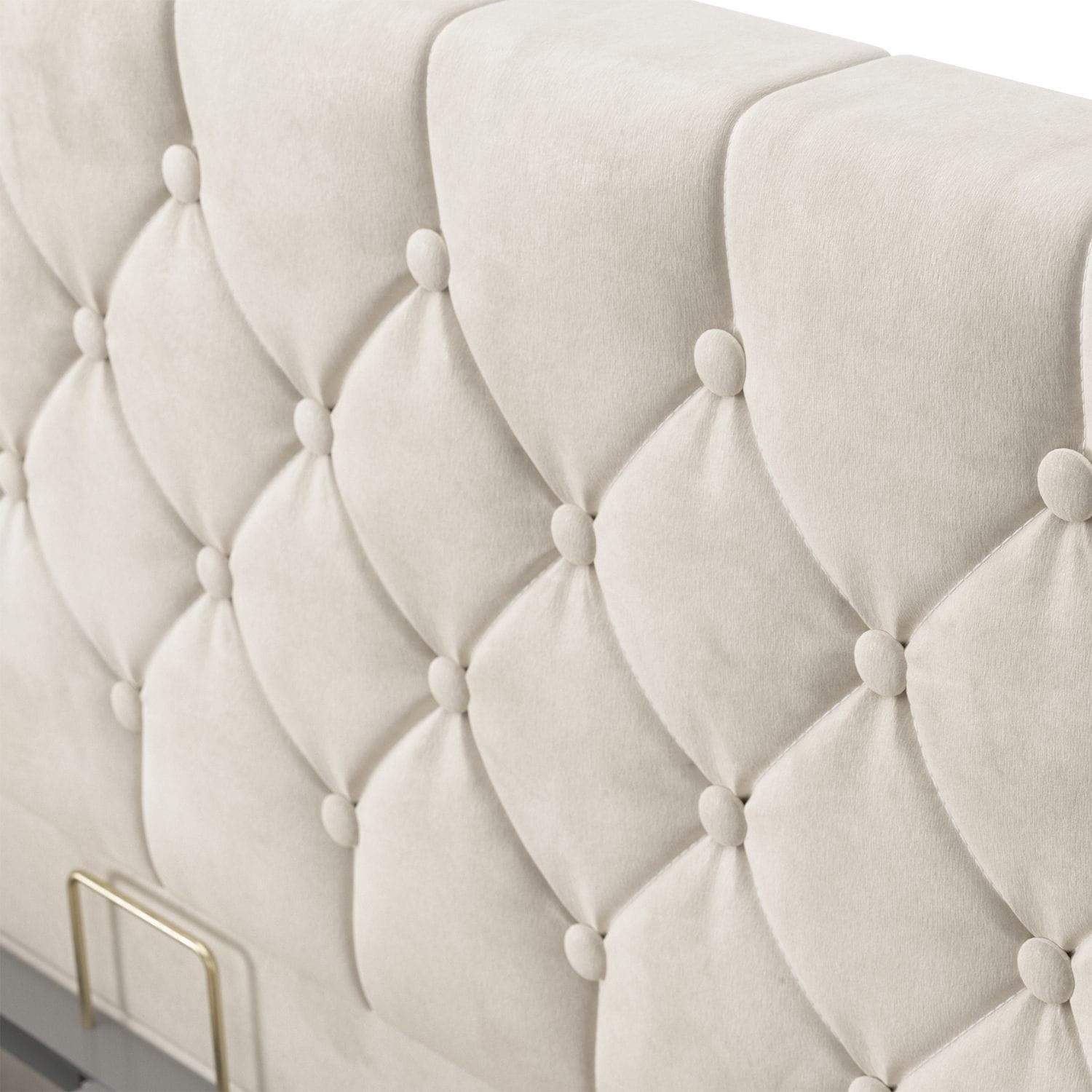 Klasyczne pikowanie welurowego obicia w połączeniu z oświetleniem LED stanie się nowoczesnym akcentem w Twojej sypialni.