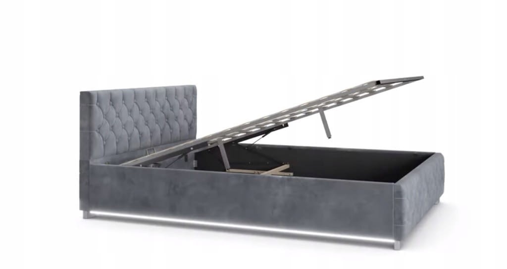 Klasyczne pikowanie welurowego obicia w połączeniu z oświetleniem LED stanie się nowoczesnym akcentem w Twojej sypialni.