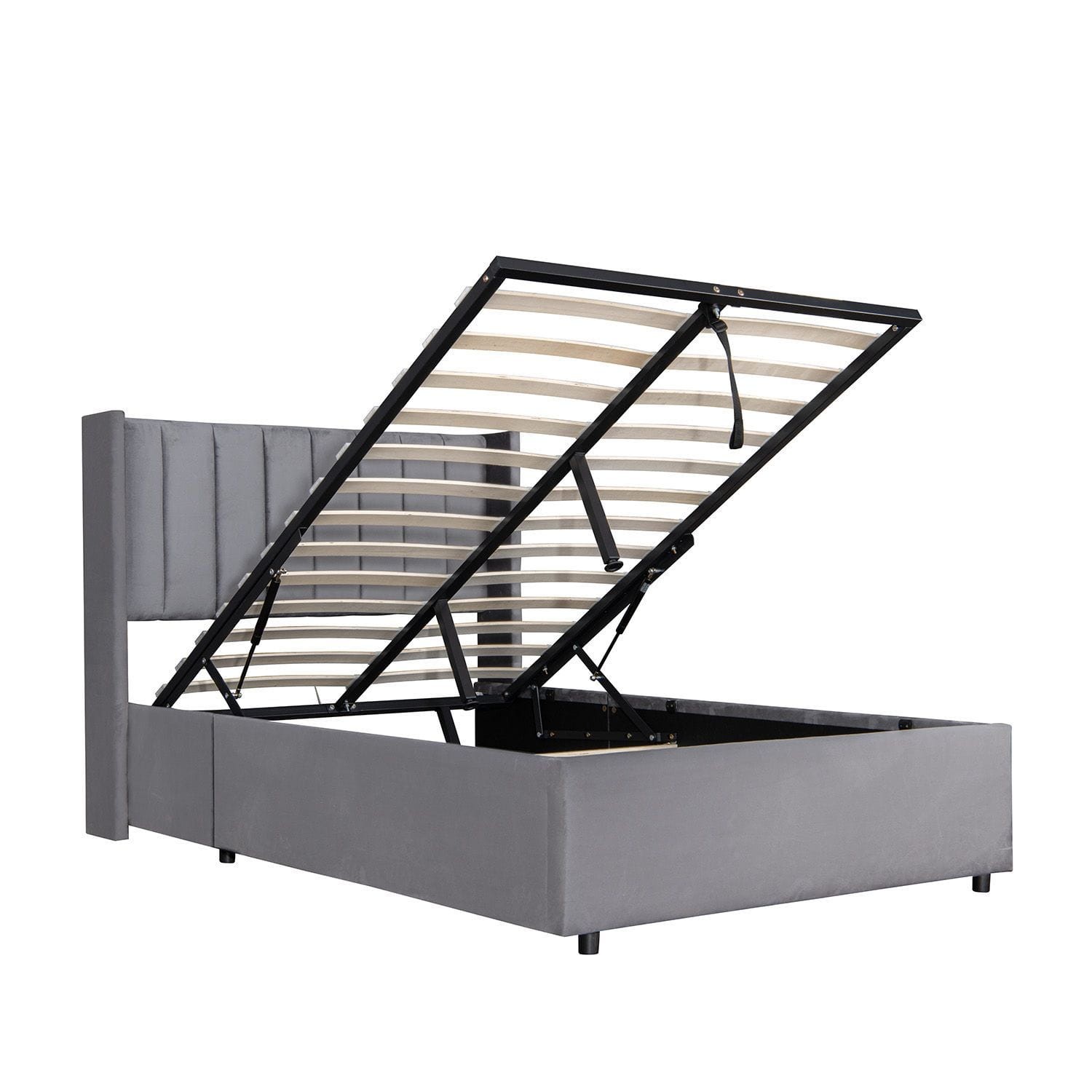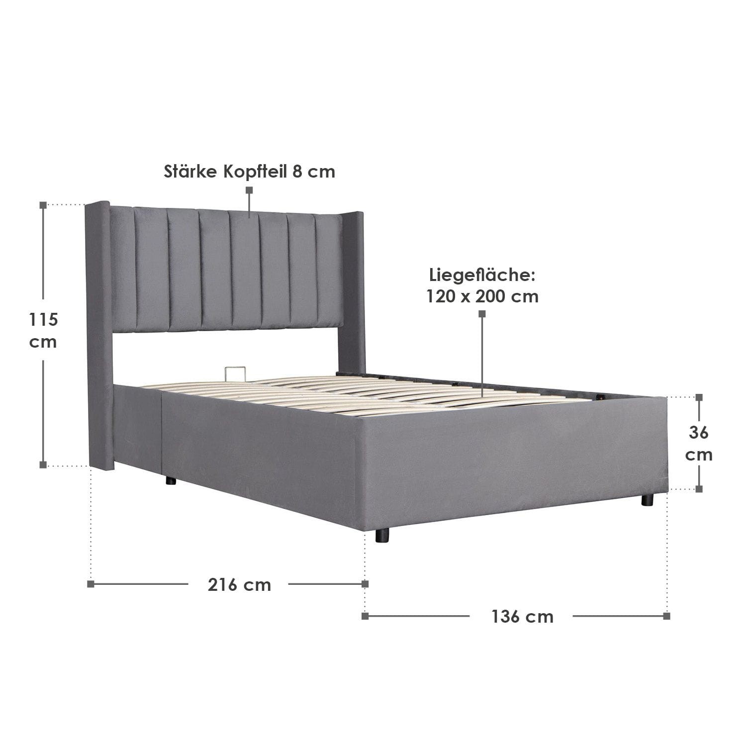 Dzięki podnośnikom gazowym powierzchnię do leżenia można bez wysiłku otworzyć i uzyskać dostęp do pojemnego pojemnika na pościel, ręczniki i nie tylko.