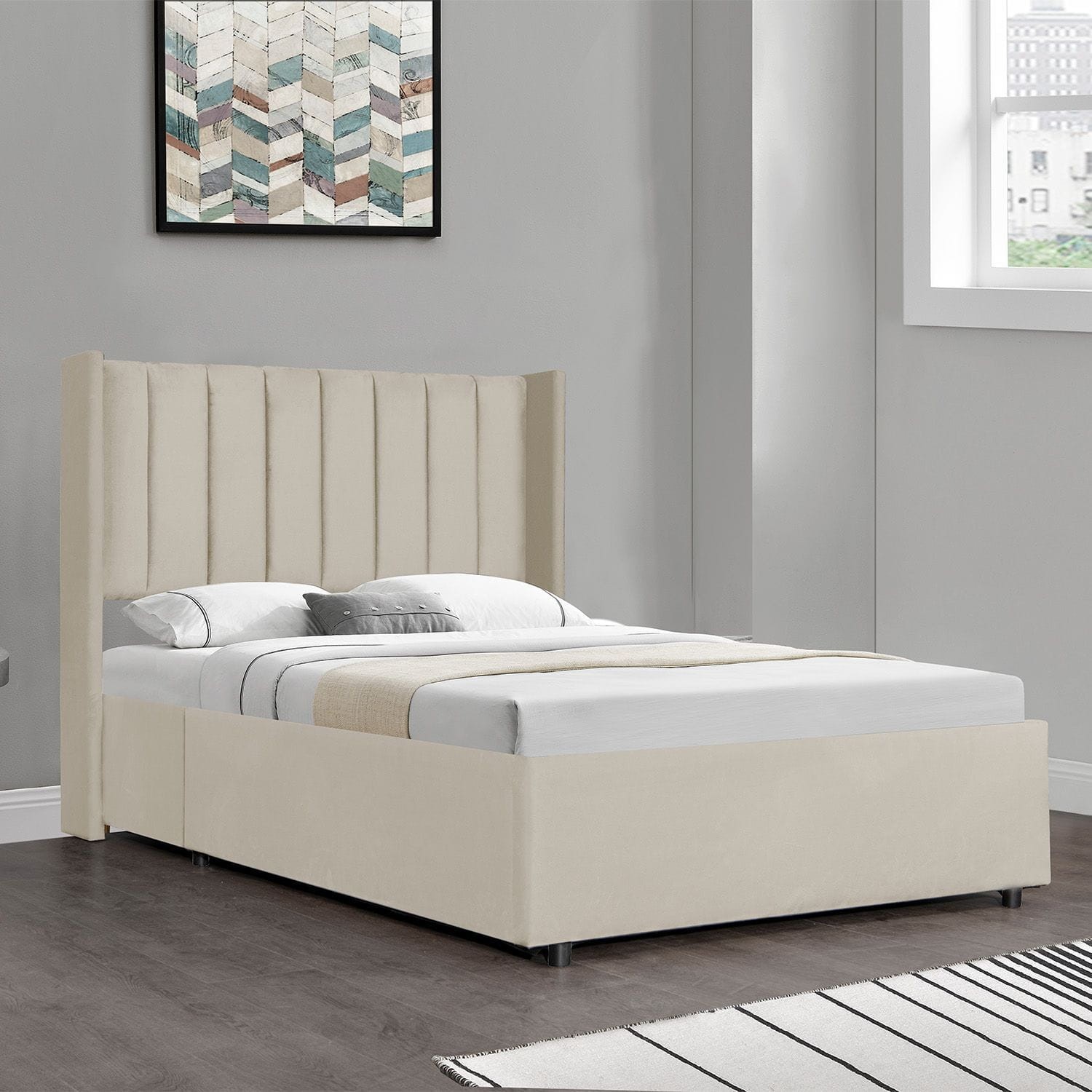Piękne łóżko tapicerowane (140 x 200 cm,) nada urok każdej sypialni. Można wspaniale odpocząć wciągu dnia i doskonale zregenerować siły podczas nocy. Tworzy wspaniałą atmosferę w twojej sypialni i poczujesz się całkowicie komfortowo. Dzięki miękkiej wyściółce z aksamitną tkaniną, oraz wysokim zagłowiem który służy jako wygodne oparcie
