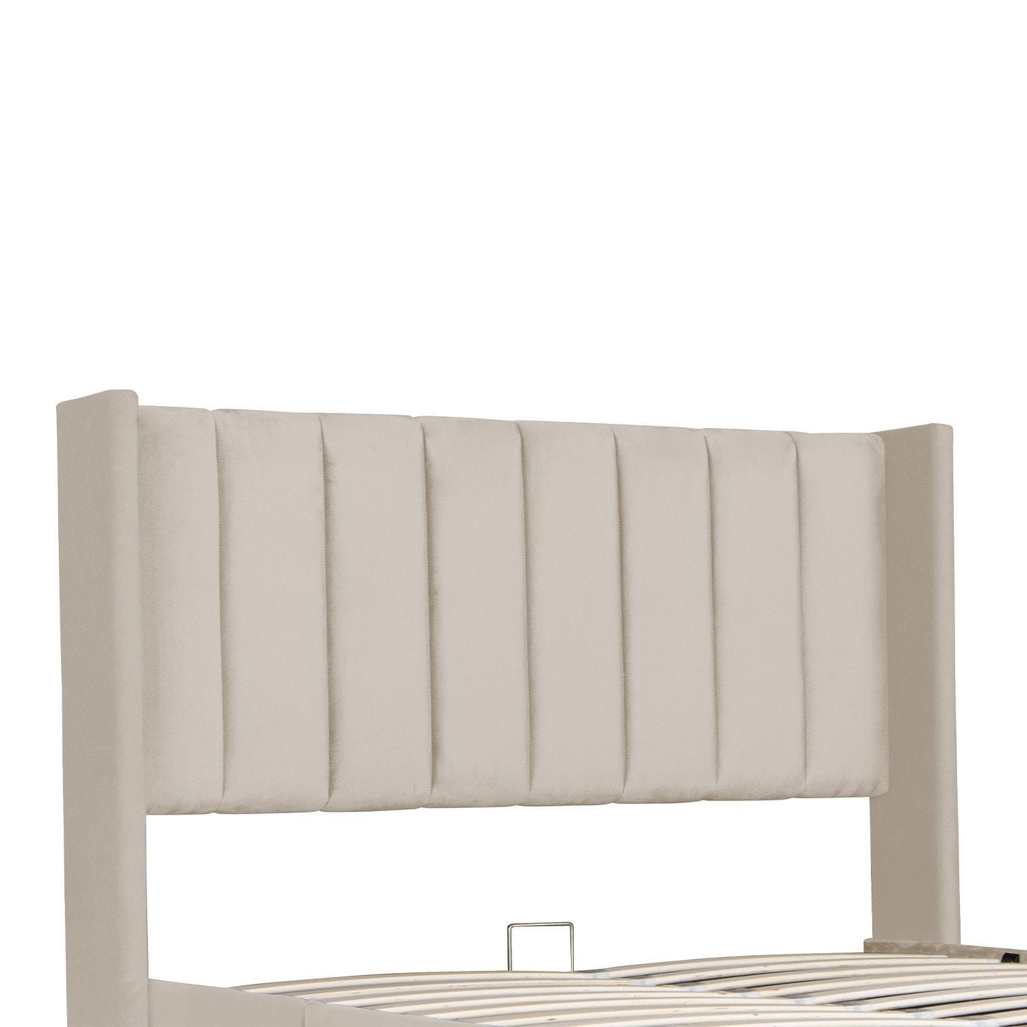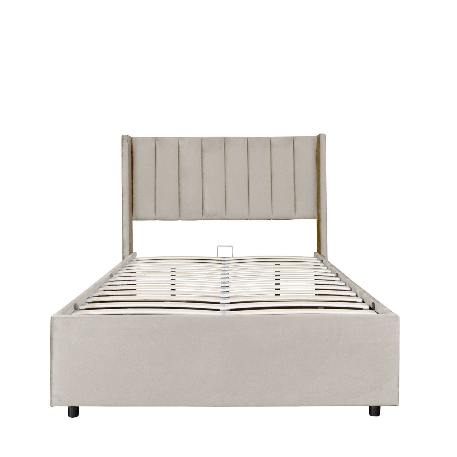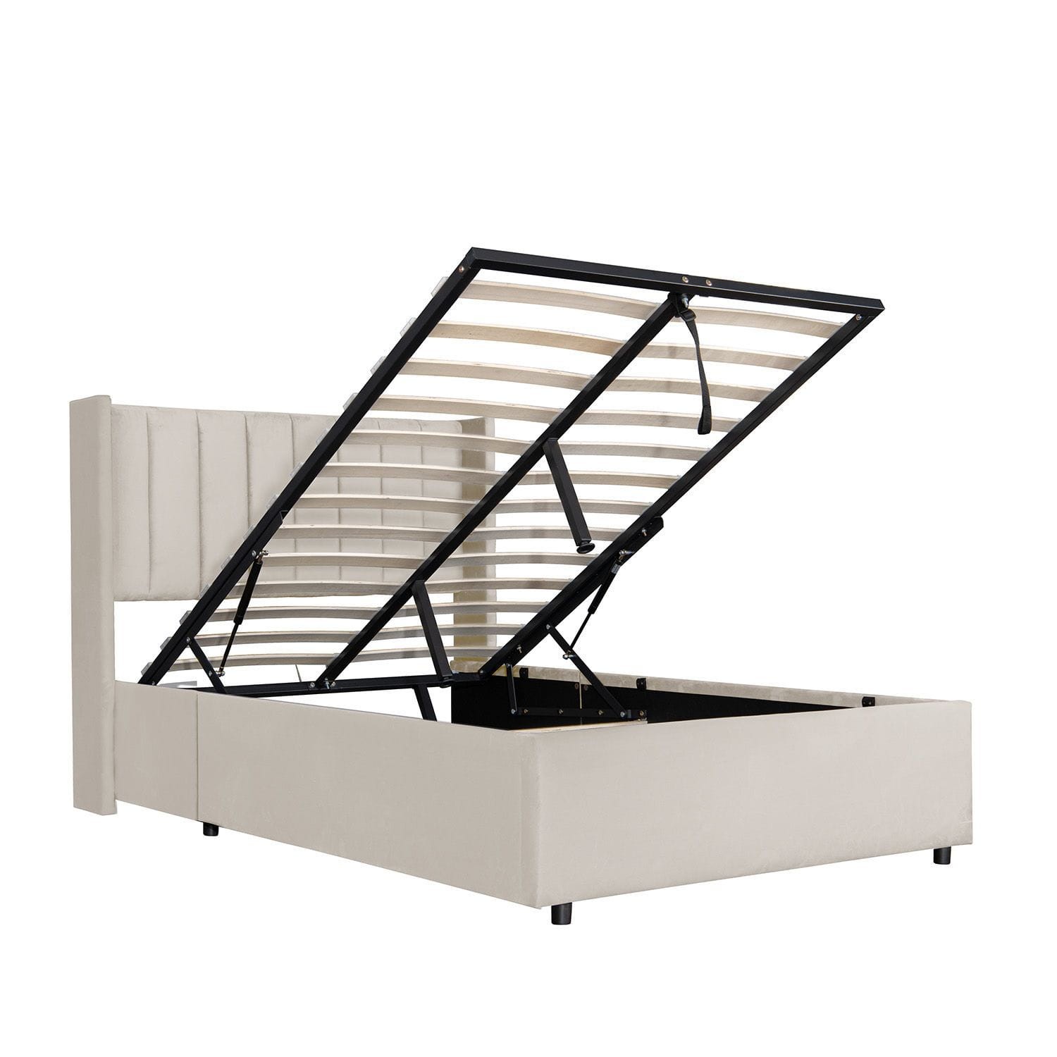 Dzięki podnośnikom gazowym powierzchnię do leżenia można bez wysiłku otworzyć i uzyskać dostęp do pojemnego pojemnika na pościel, ręczniki i nie tylko.