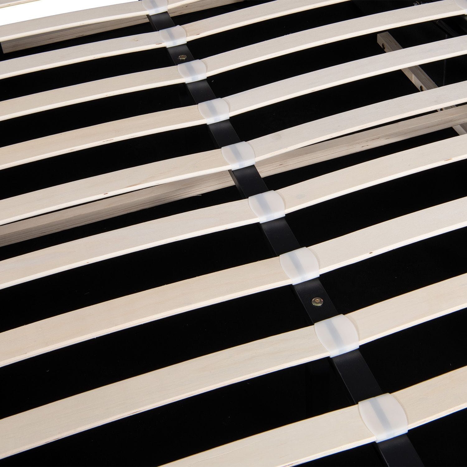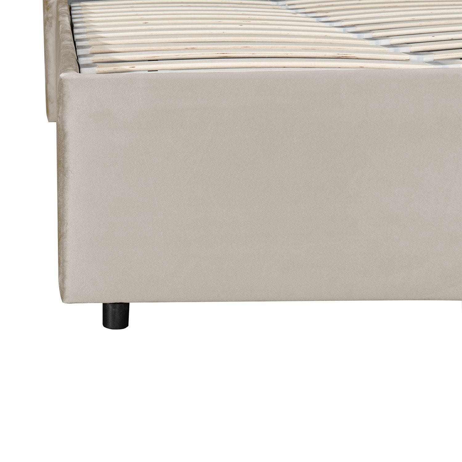 Sprężynowa rama z listew zapewnia relaksującą pozycję leżącą i spokojny sen. Wysoki zagłówek jest szczególnie wygodny dzięki wyściełaniu i aksamitnemu obiciu.