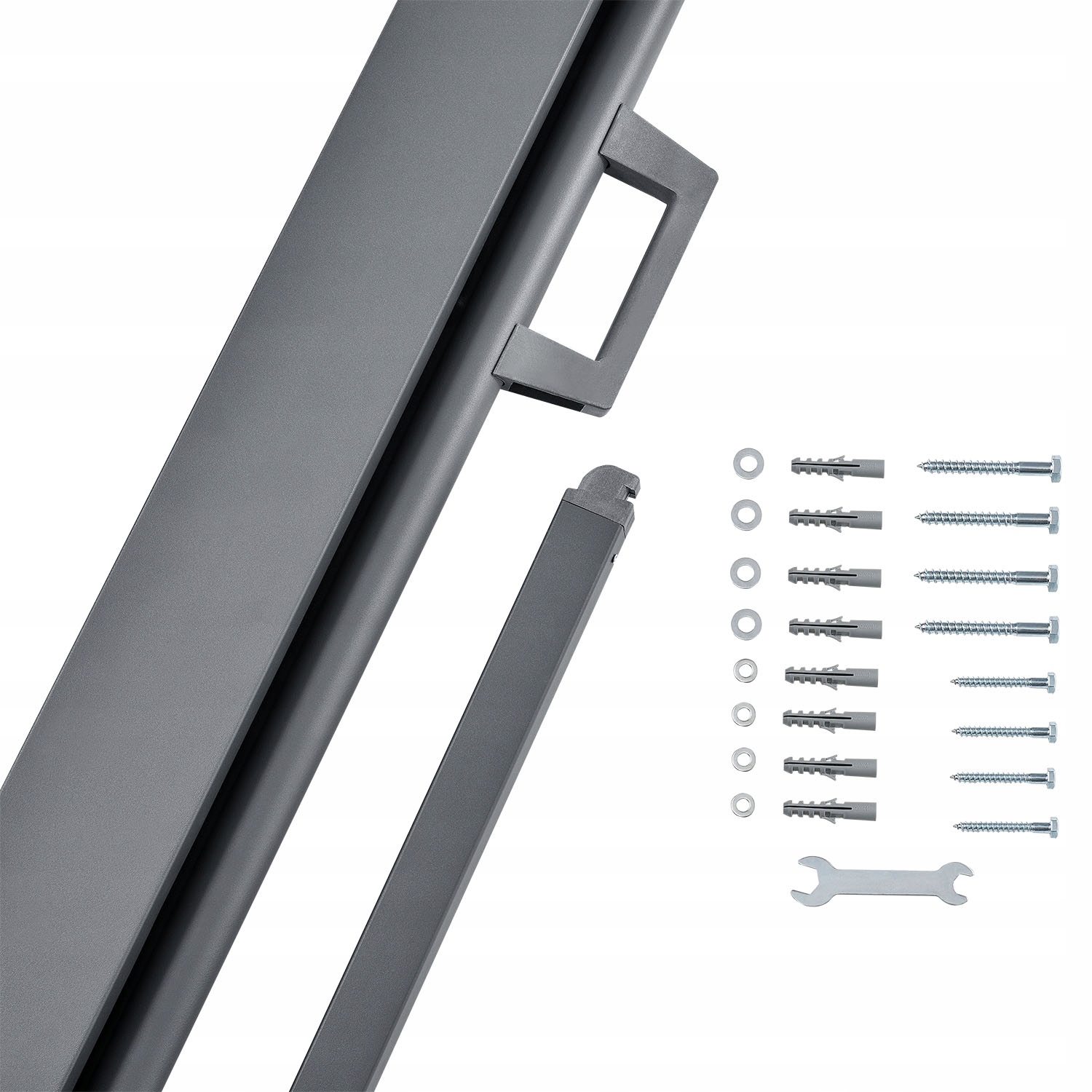 Konstrukcja naszej markizy jest prosta i nieskomplikowana. Wszystkie potrzebne śruby i kołki są dołączone, dzięki czemu można od razu rozpocząć pracę. Po przymocowaniu skrzynki markizy do odpowiedniej ściany, wystarczy wybrać żądaną odległość między słupkiem markizy i zakotwiczyć ją.