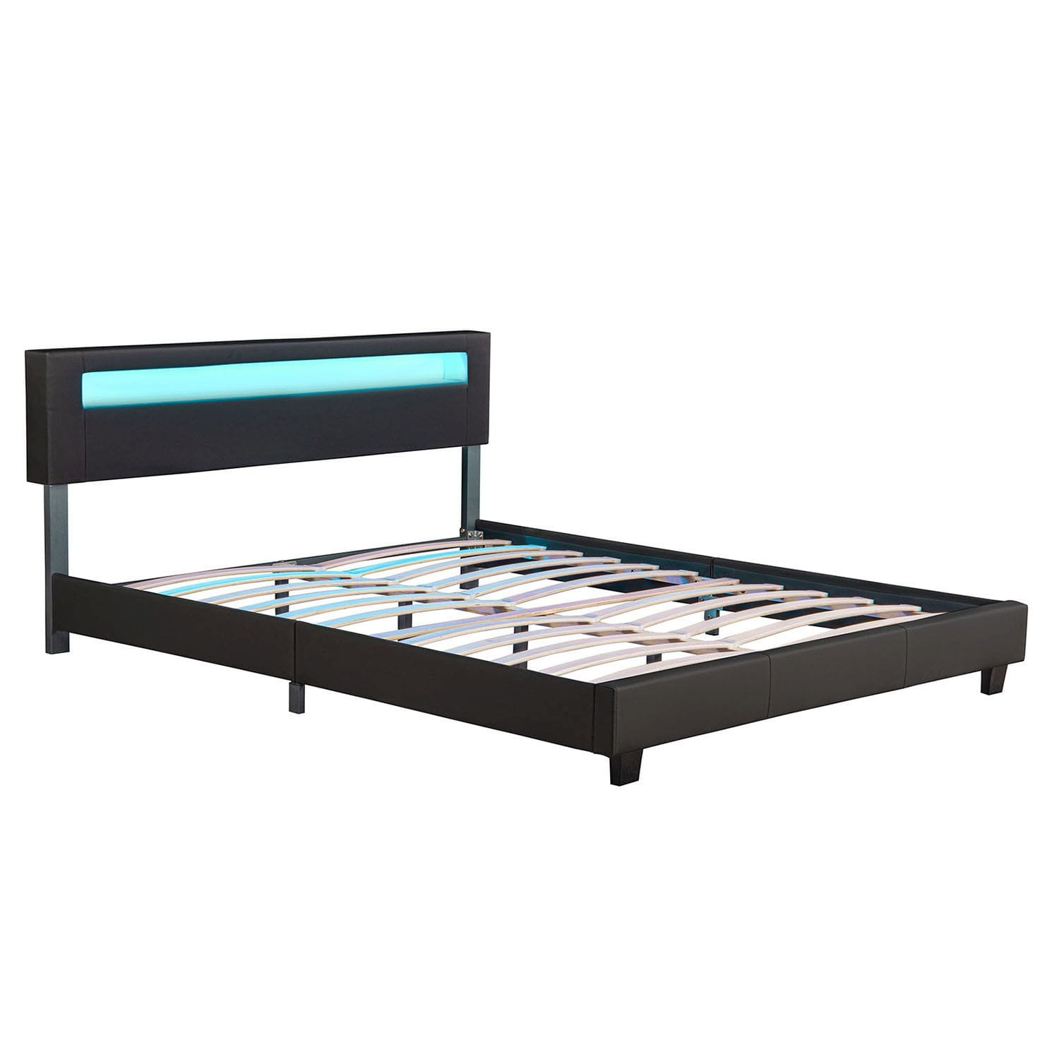 Piękne łóżko tapicerowane (160 x 200 cm, czarne) z oświetleniem LED w zagłowiu nada urok każdej sypialni. Można wspaniale odpocząć wciągu dnia i doskonale zregenerować siły podczas nocy. Tworzy wspaniałą atmosferę w twojej sypialni i poczujesz się całkowicie komfortowo. Trwała powłoka z skóry syntetycznej jest doskonała i łatwa w utrzymaniu czystości.