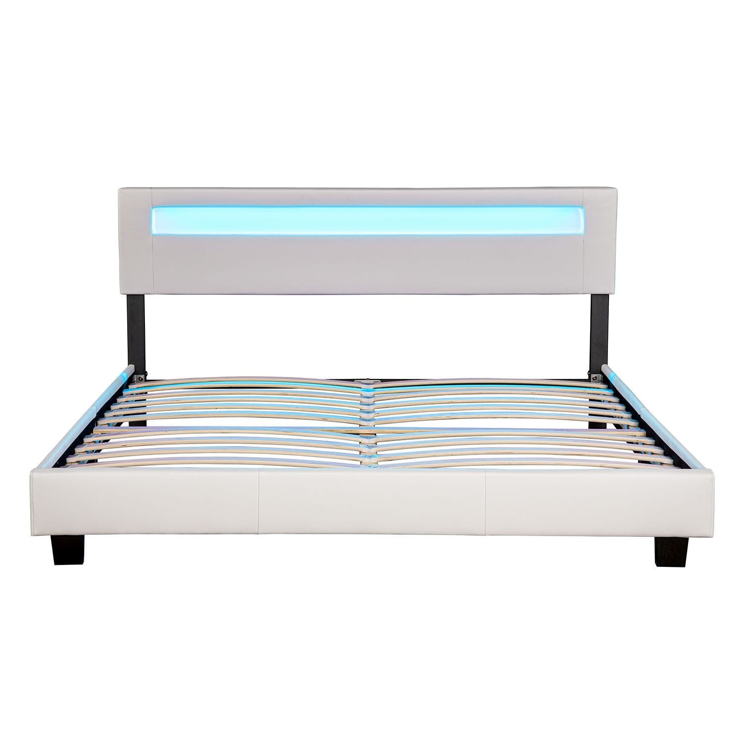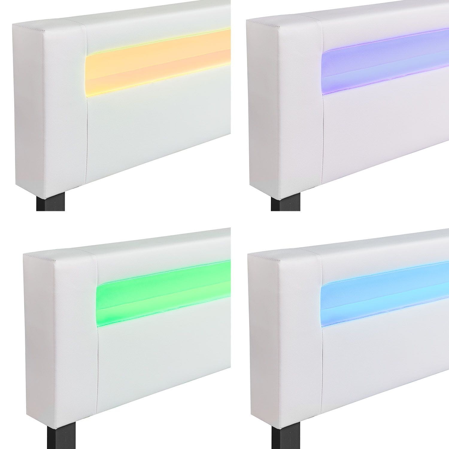 Piękne łóżko tapicerowane (180 x 200 cm,) z oświetleniem LED w zagłowiu nada urok każdej sypialni. Można wspaniale odpocząć wciągu dnia i doskonale zregenerować siły podczas nocy. Tworzy wspaniałą atmosferę w twojej sypialni i poczujesz się całkowicie komfortowo. Trwała powłoka z skóry syntetycznej jest doskonała i łatwa w utrzymaniu czystości.