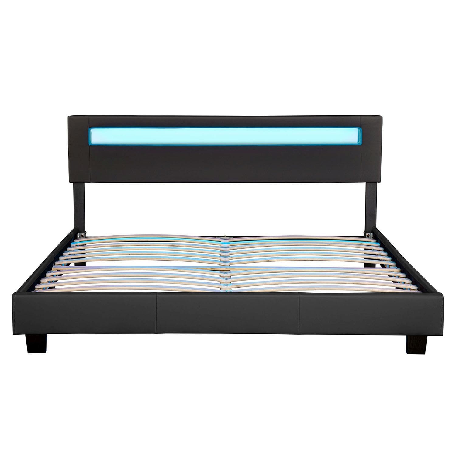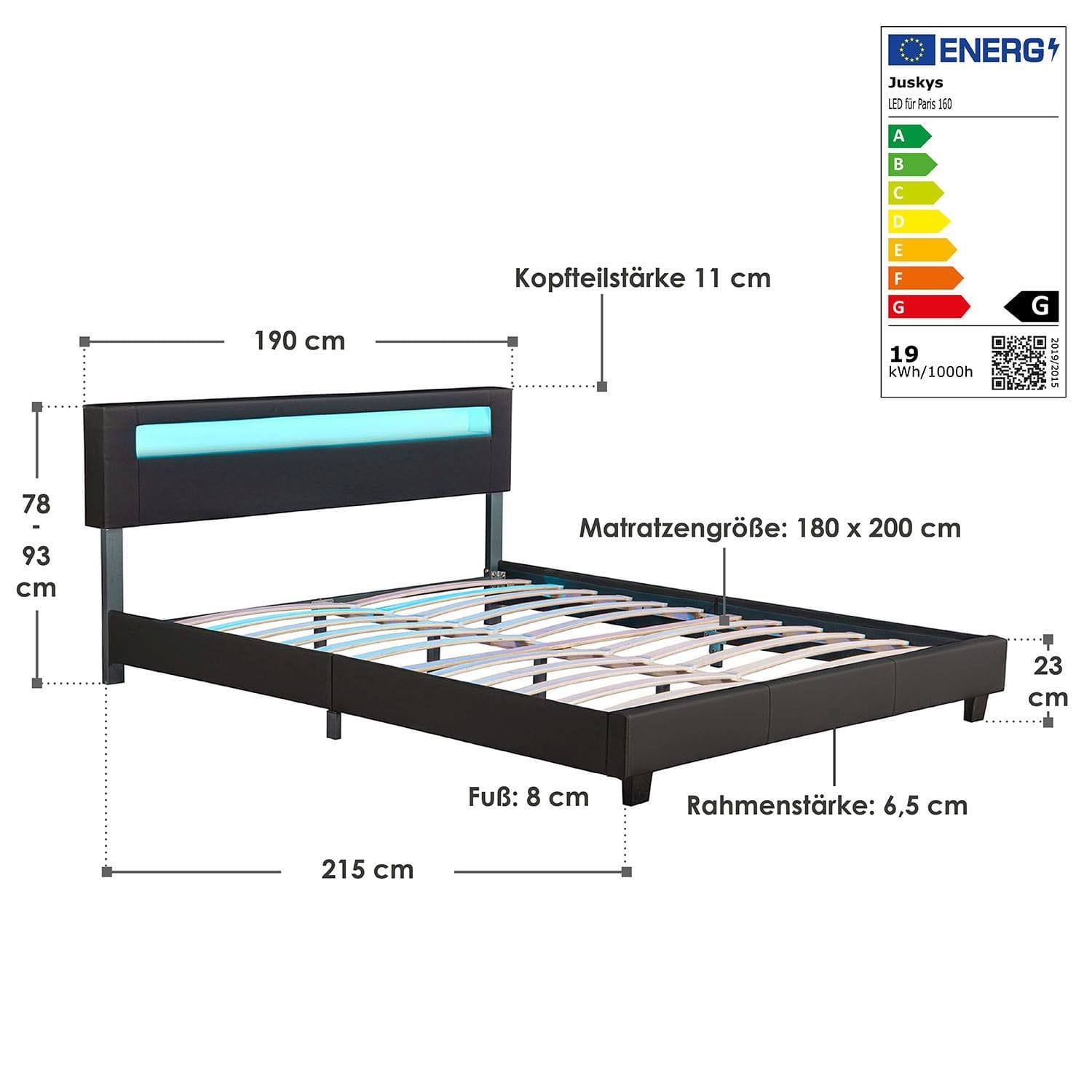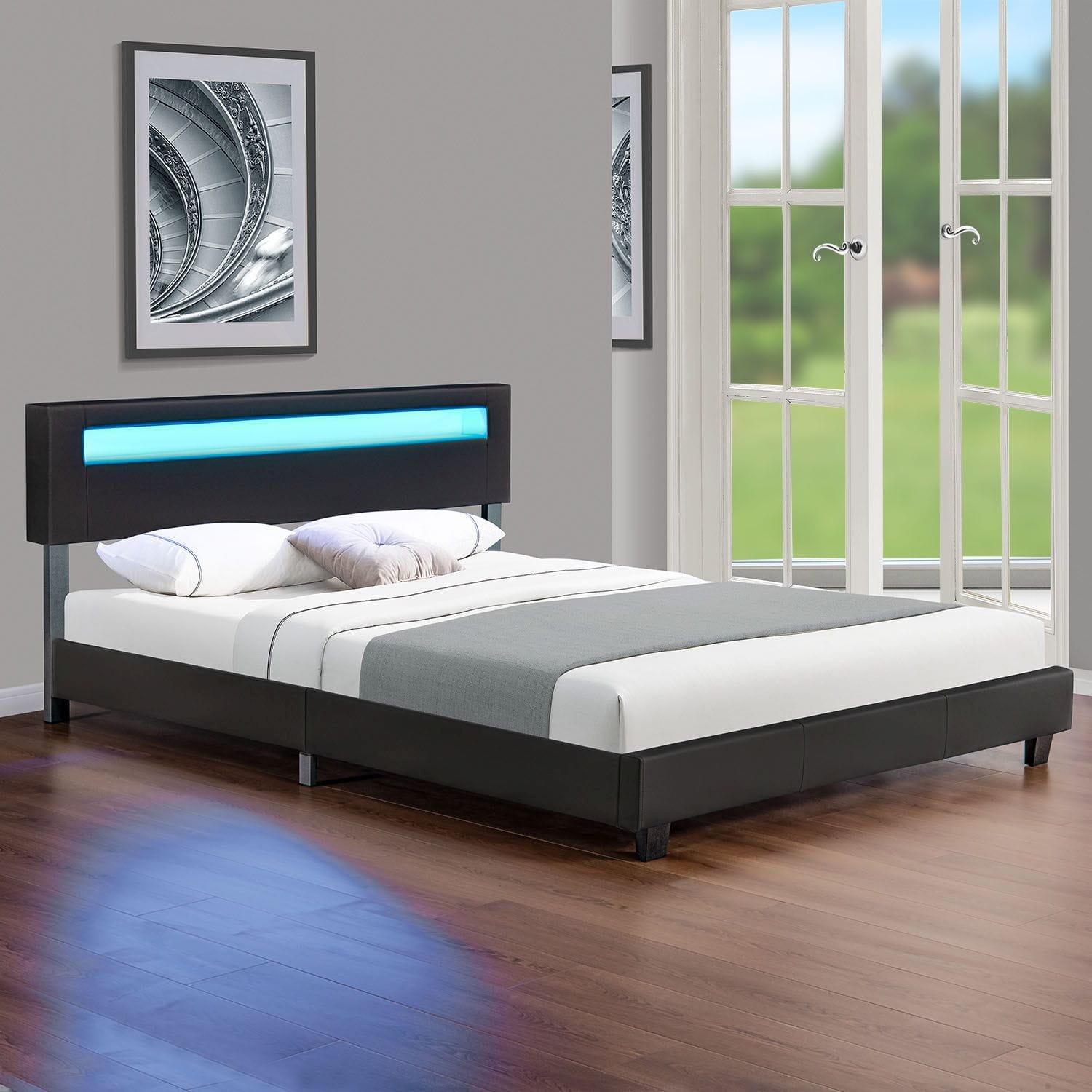 Piękne łóżko tapicerowane (180 x 200 cm,czarne) z oświetleniem LED w zagłowiu nada urok każdej sypialni. Można wspaniale odpocząć wciągu dnia i doskonale zregenerować siły podczas nocy. Tworzy wspaniałą atmosferę w twojej sypialni i poczujesz się całkowicie komfortowo. Trwała powłoka z skóry syntetycznej jest doskonała i łatwa w utrzymaniu czystości.